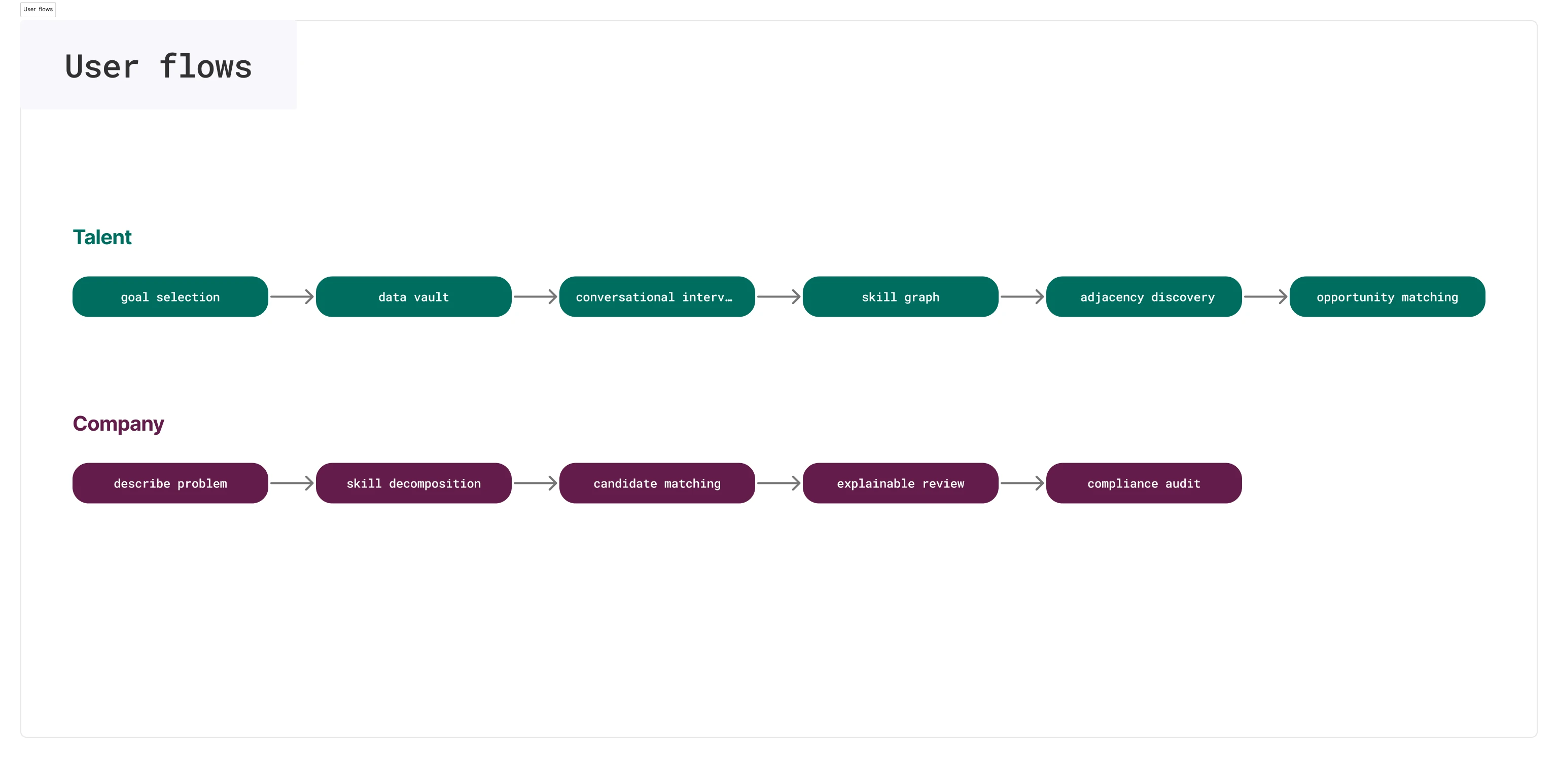 Skill translation marketplace for career changers 50+. Structured skill graphs, AI-guided interviews, and dual-audience architecture for human and agent users.