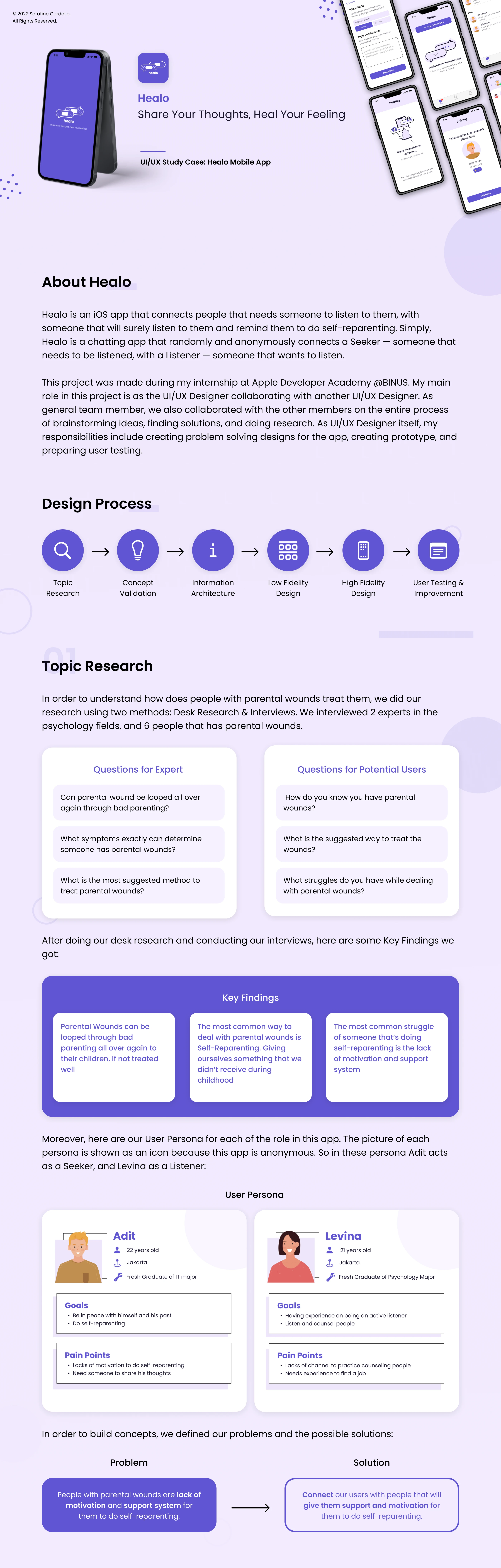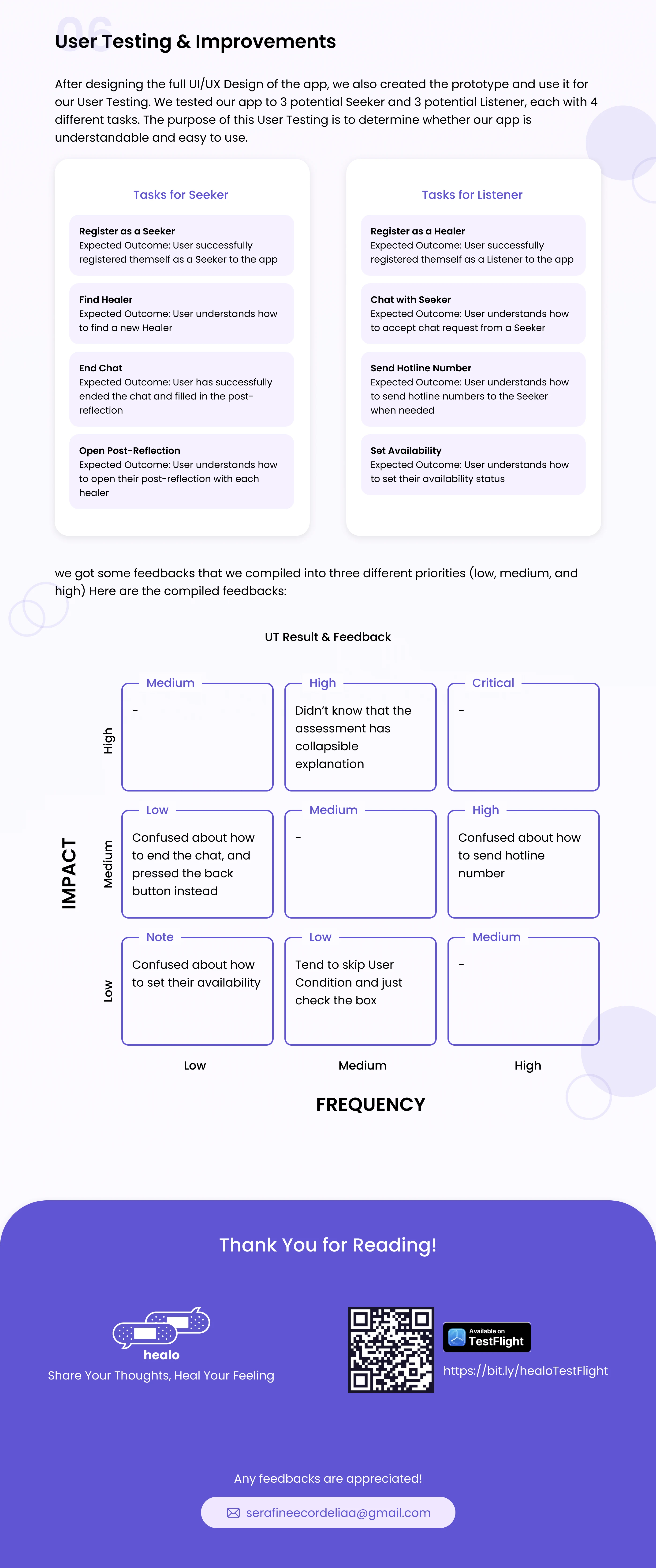 Healo is an app that connects people that needs someone to listen to them, with someone that will surely listen to them and remind them to do self-reparenting.