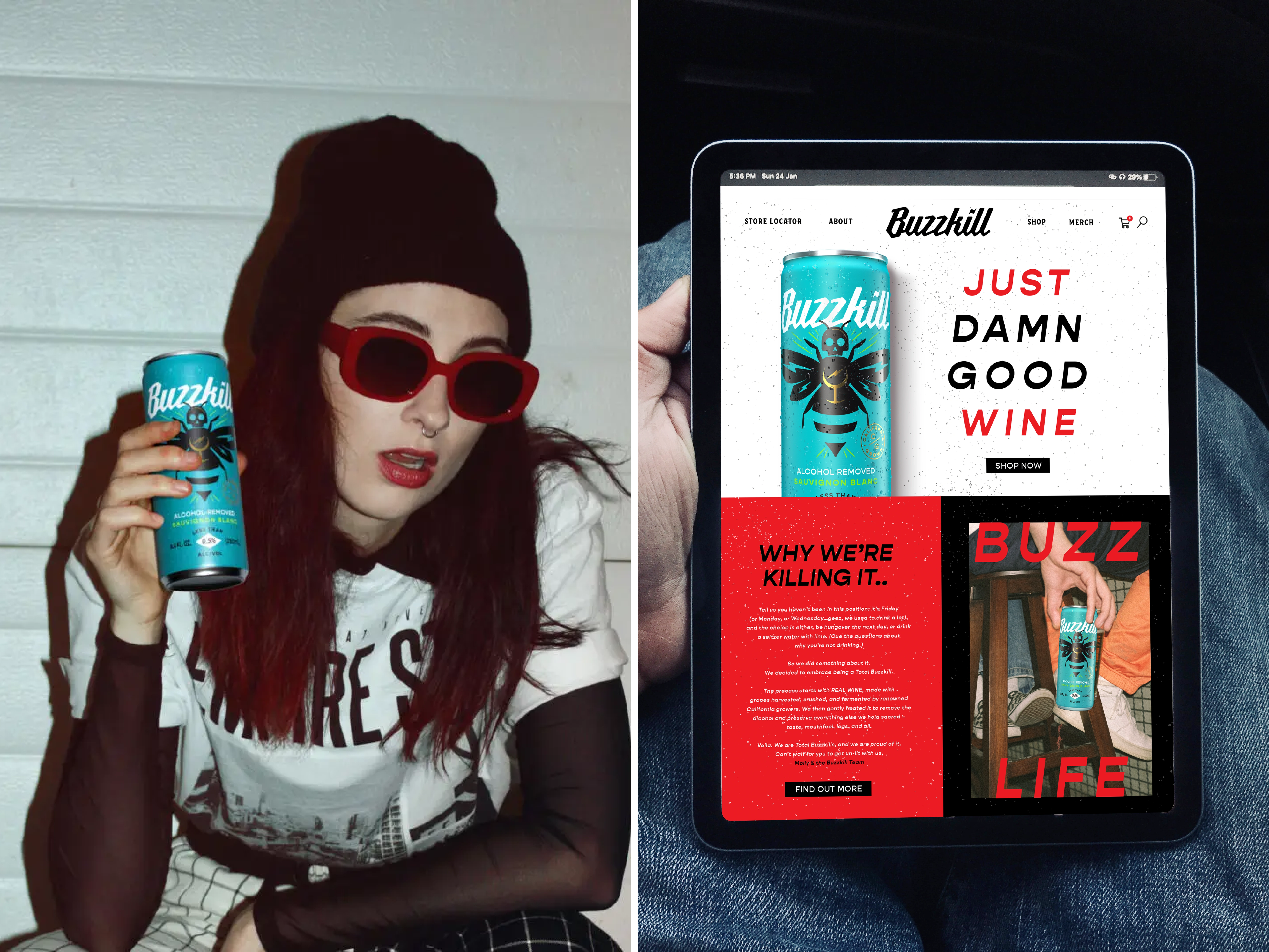 Buzzkill is a bold, California-grown non-alcoholic wine brand created to flip the stereotypes of moderation on their head—embracing irreverence, real wine credentials, and rebellious style to deliver all the pleasure, attitude, and authenticity of wine without the hangover.