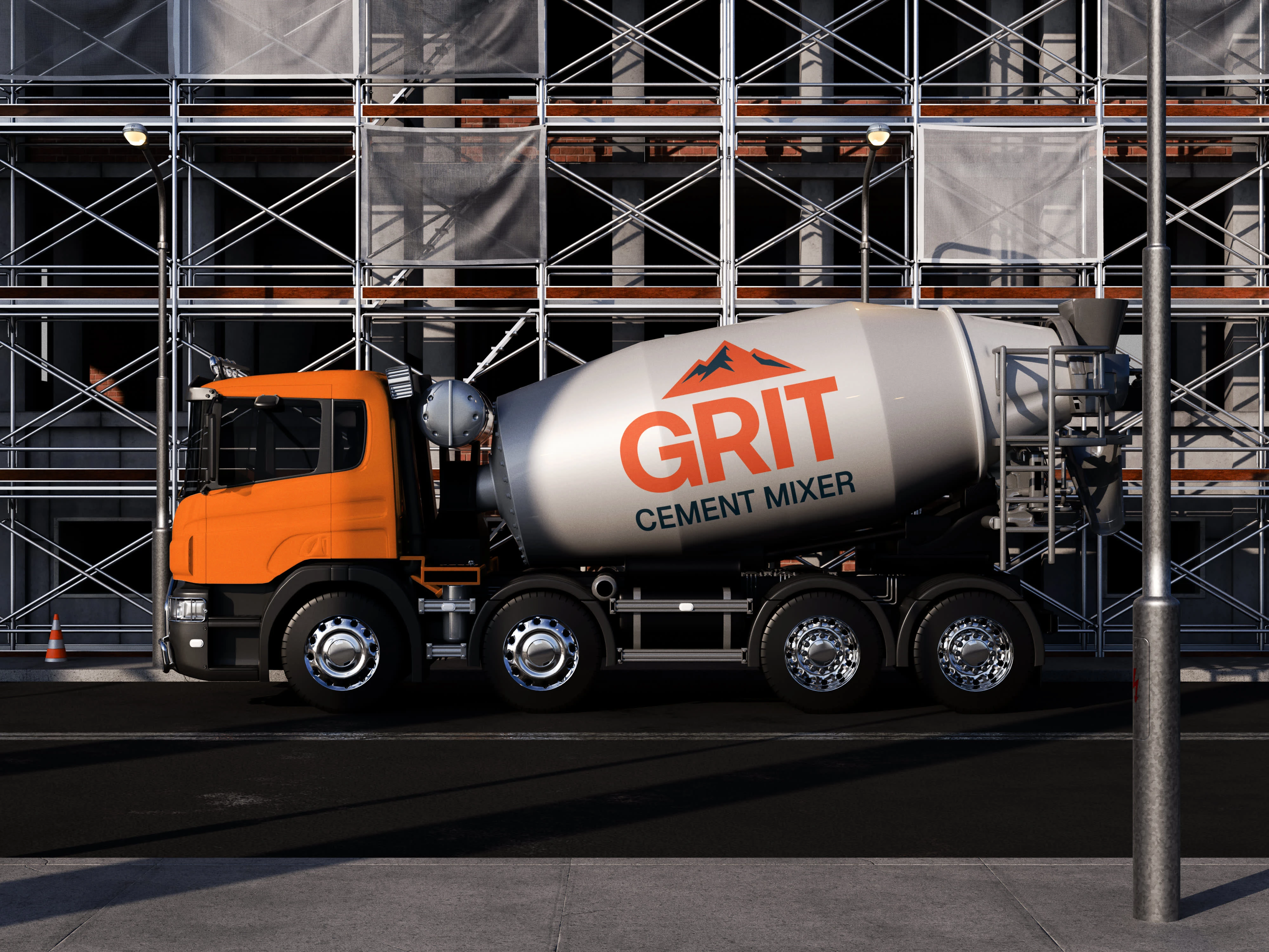 The color palette pairs industrial orange with deep steel blue to create strong contrast and high visibility. Clean typography and minimal iconography ensure clarity, consistency, and professional communication across all applications — from print materials to equipment branding and digital platforms.