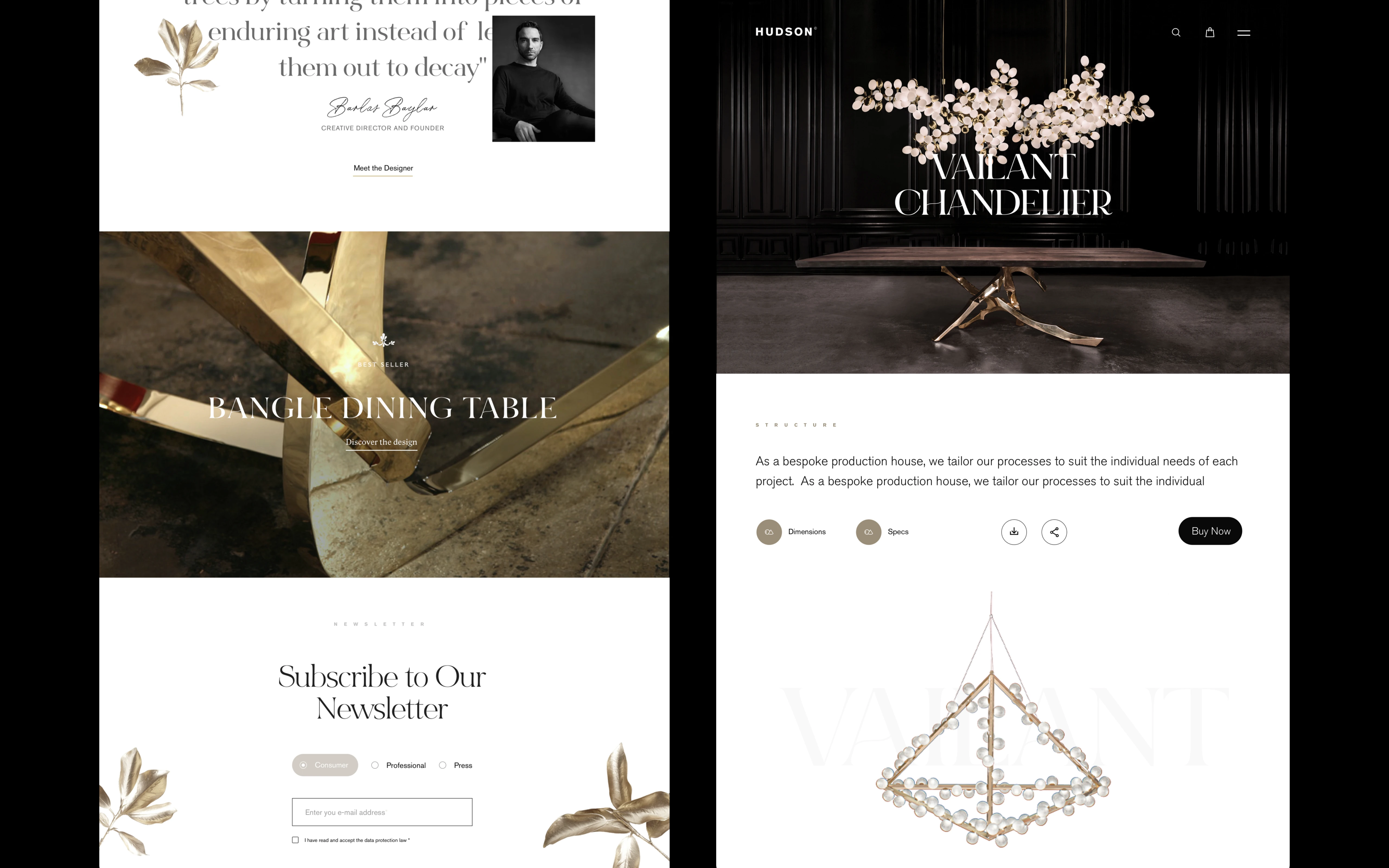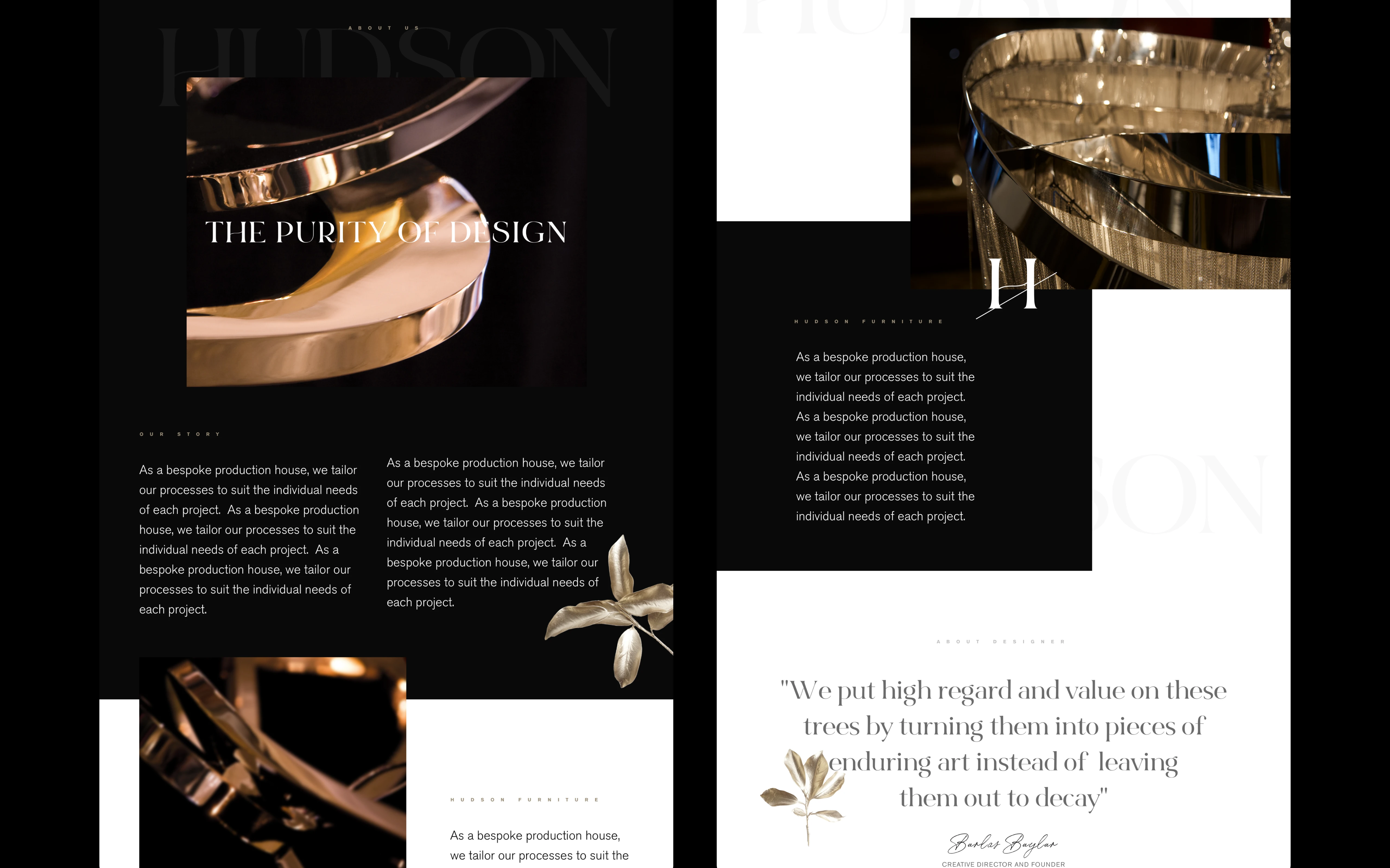 I designed the full UI/UX experience for Hudson Furniture’s corporate and e-commerce website, created for a New York-based furniture brand. The goal was to establish a refined digital presence that reflects the brand’s craftsmanship, design heritage, and carefully crafted product collections, while delivering an intuitive and engaging user journey across devices.