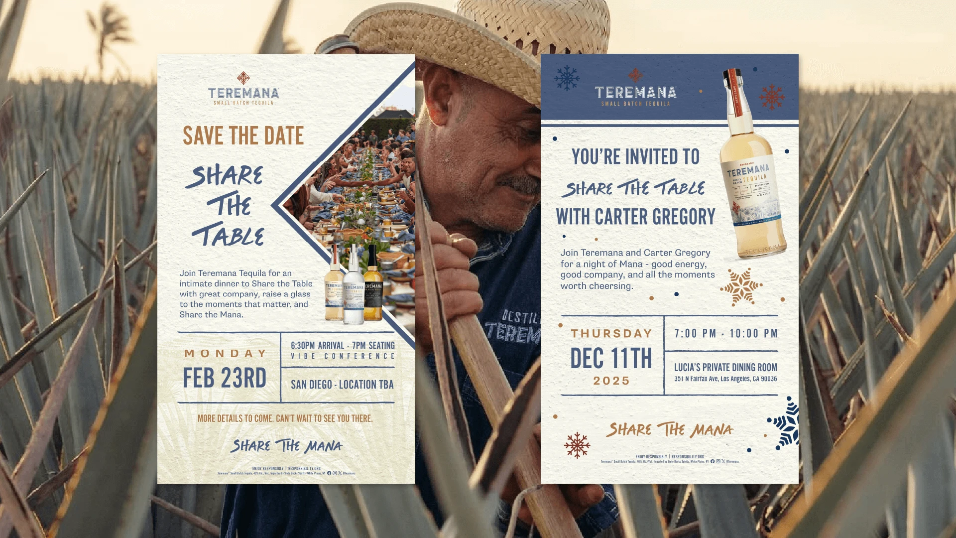 Teremana Tequila, founded by Dwayne "The Rock" Johnson, had established strong brand recognition but required marketing materials that maintained visual consistency across digital campaigns and experiential events. The challenge was adapting an established premium brand system for various applications, email marketing to hands-on tasting experiences in Mexico, without diluting brand equity.