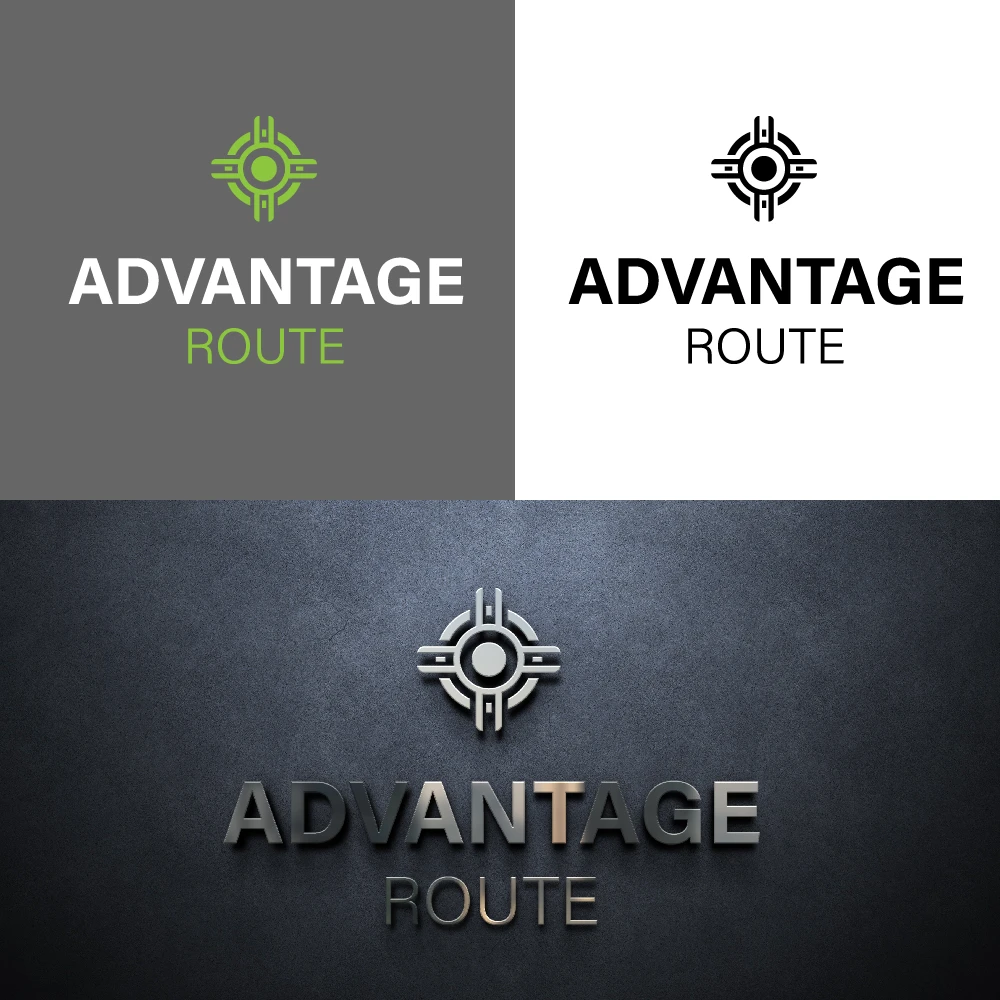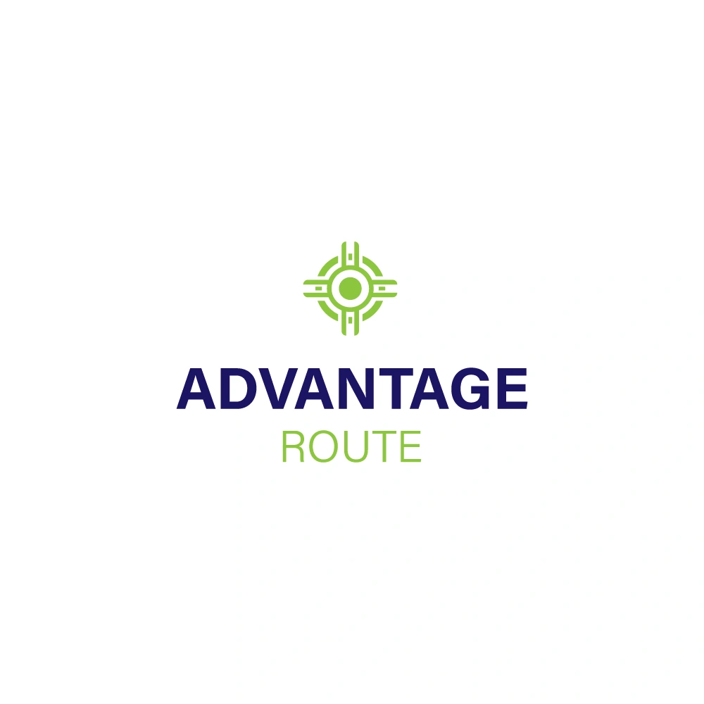 A minimalist and symbolic logo for Advantage Route. The central icon resembles a compass or a map intersection, representing guidance and direction.