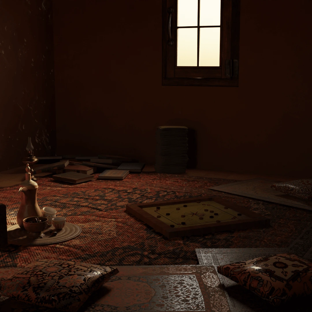 I modeled a room with blender and used sun light to add a warm and nostalgic feel
