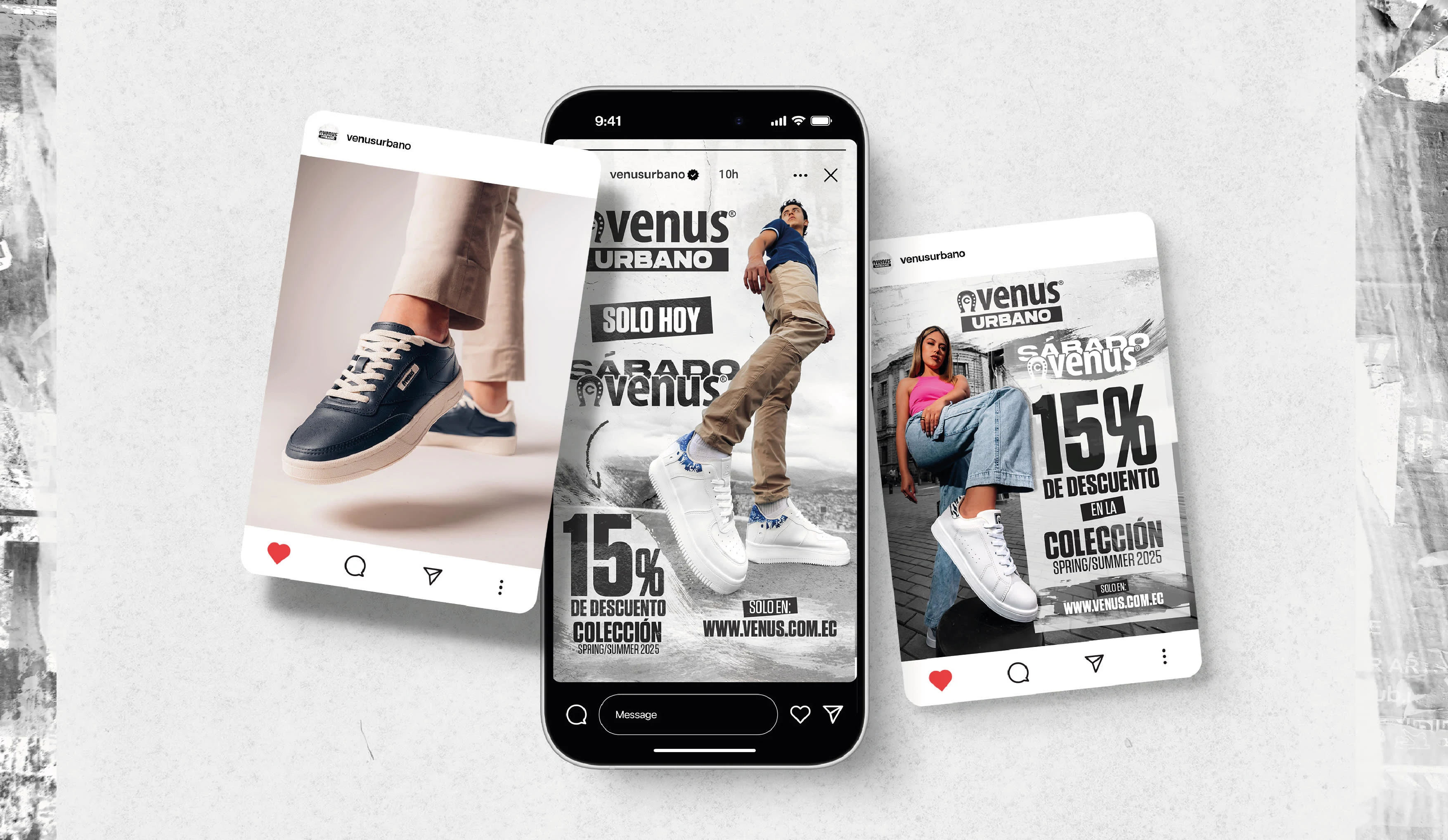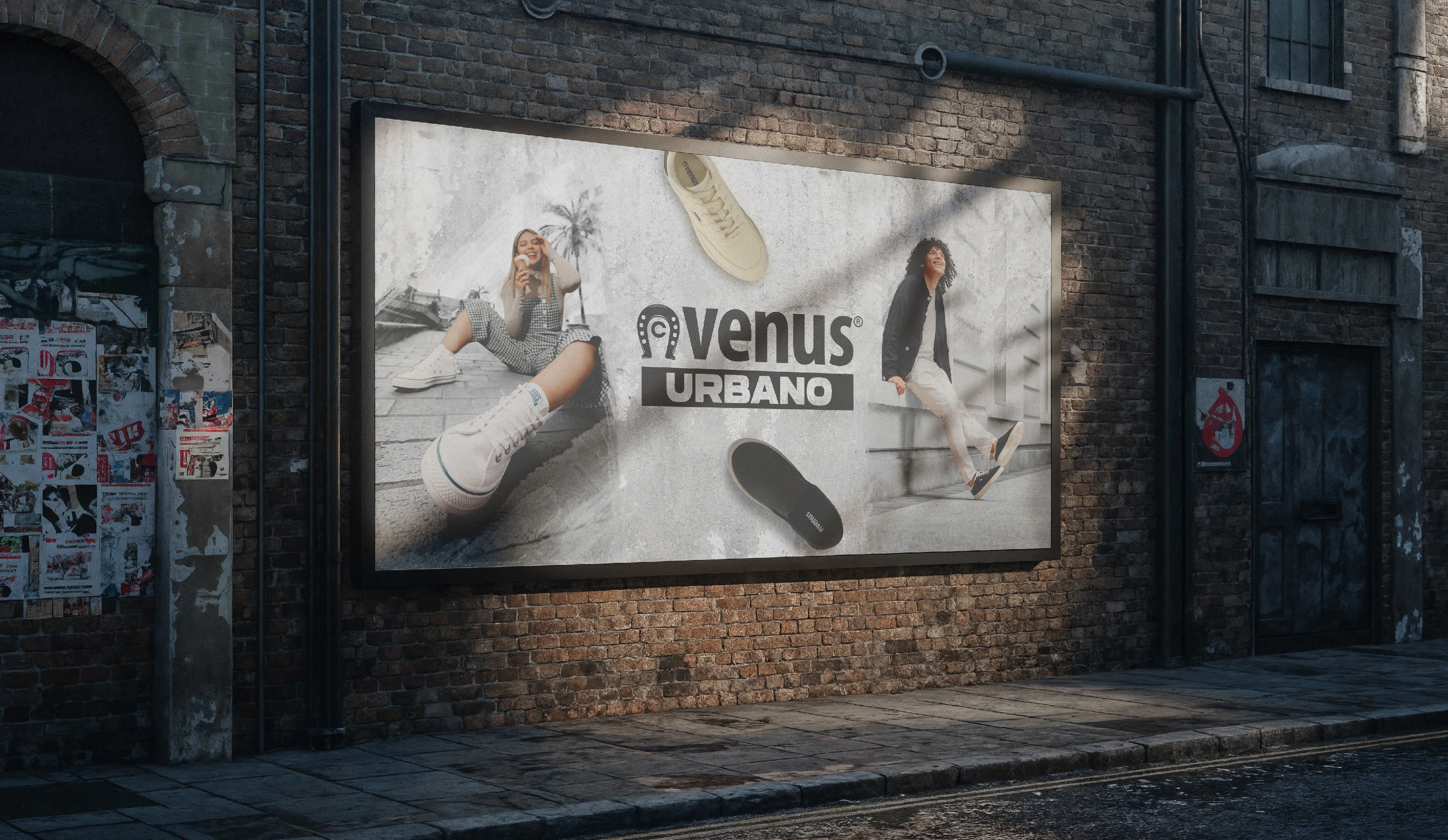 Across social media, the approach emphasizes bold and eye-catching compositions where footwear and models take center stage. This same principle extends to all advertising materials.
