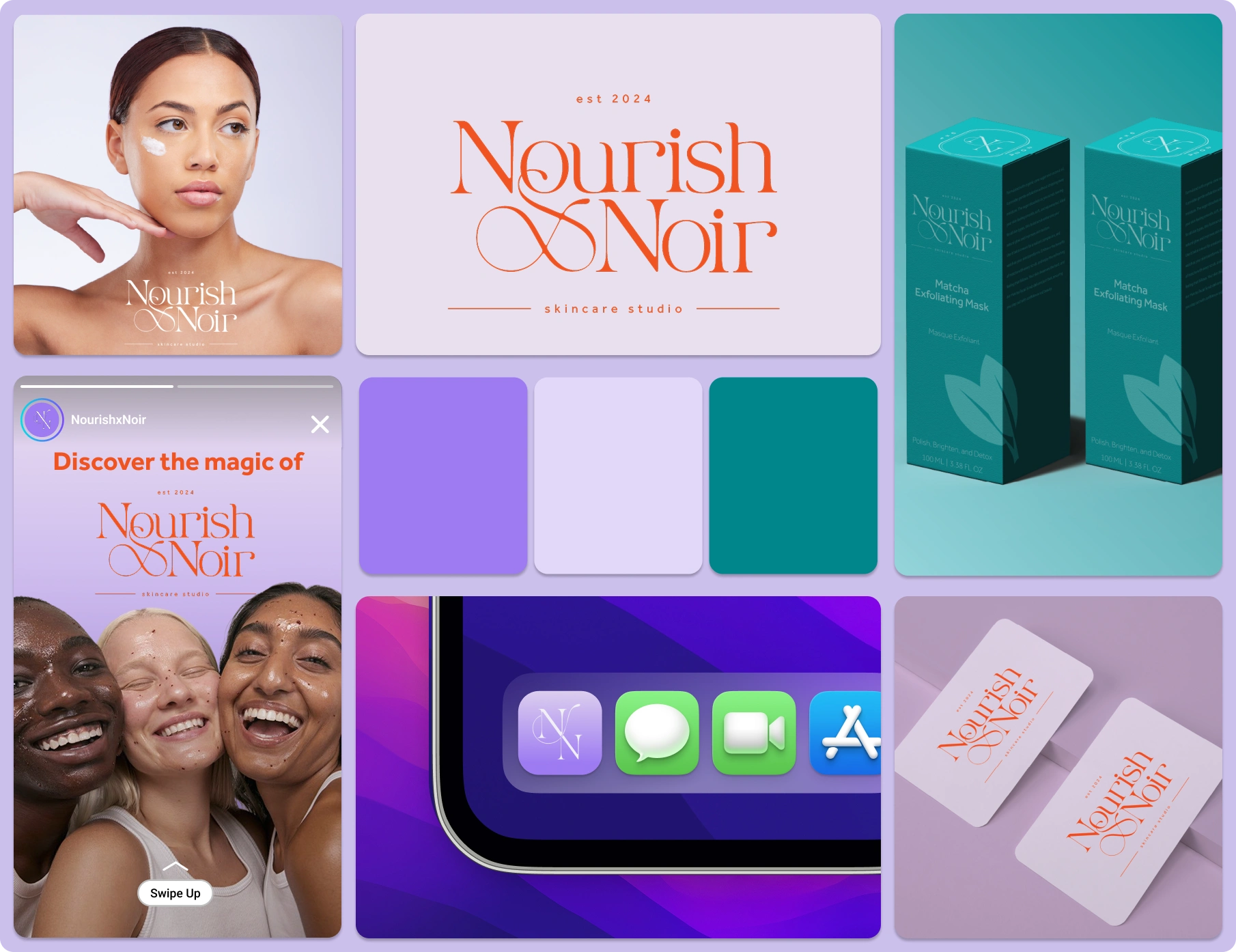 Nourish x Noir is a Black-owned skincare studio, created to celebrate and care for melanin-rich skin. The founder needed a visual identity and packaging system that felt luxurious, modern, and inclusive, something that would look just as strong on a product shelf as it does on social media.