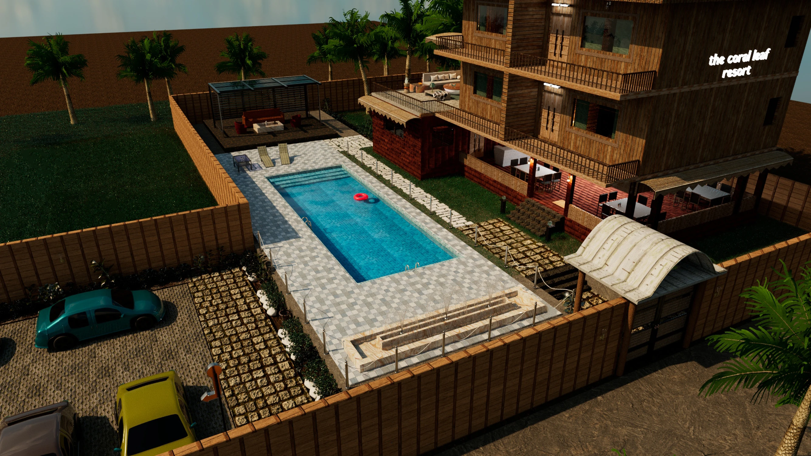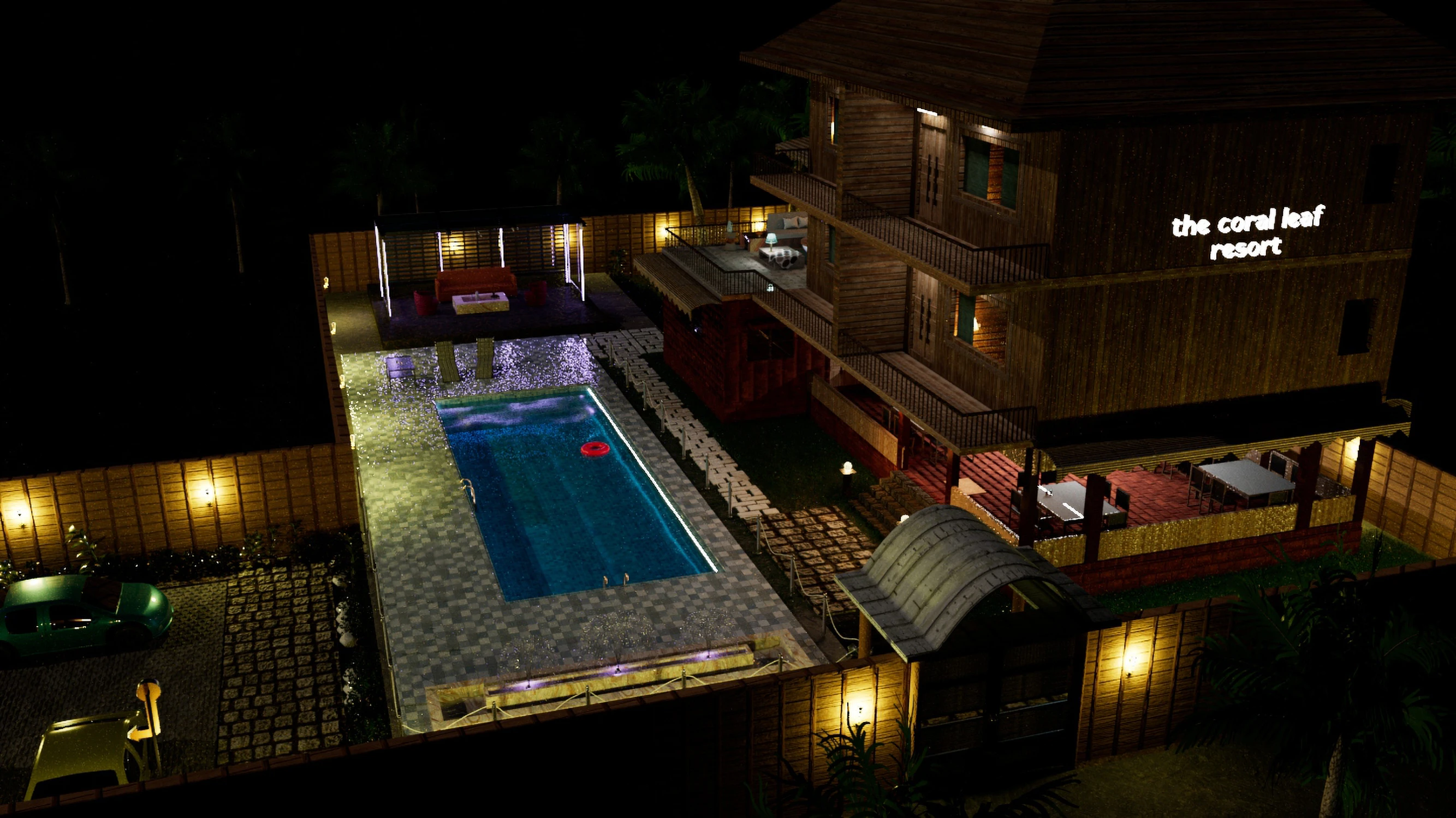 Stunning 3D resort visualization showcasing immersive design, realistic textures, and vibrant lighting to bring the luxury getaway experience to life.