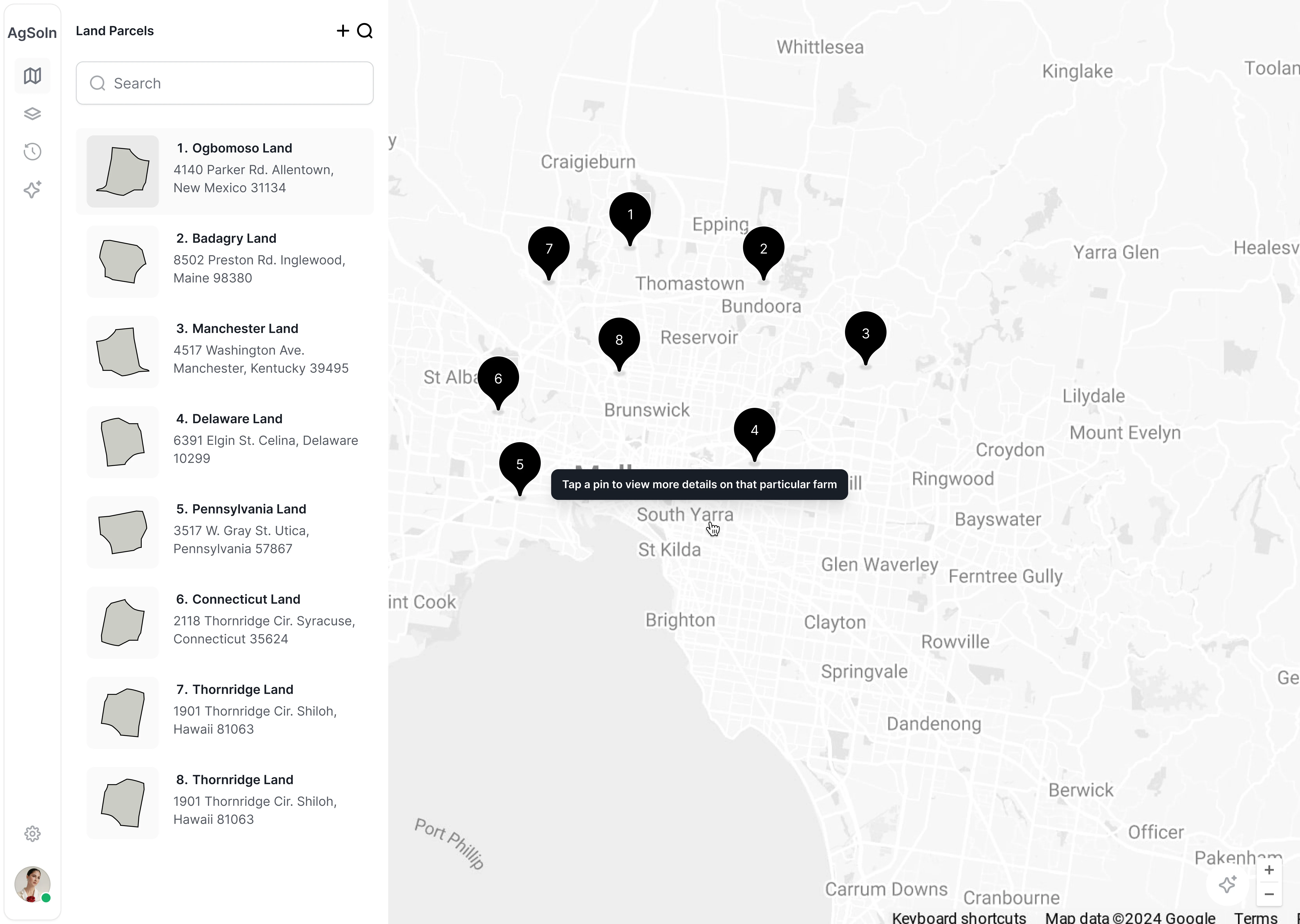 AgSol is an Agritech platform built to help farm managers oversee vast, often disjointed parcels of land. Modern farming relies heavily on data—satellite imagery, crop health indexes, yield forecasting, and weather patterns. The problem? Most existing agricultural software is overwhelmingly dense, looking more like an Excel spreadsheet than an actionable dashboard.