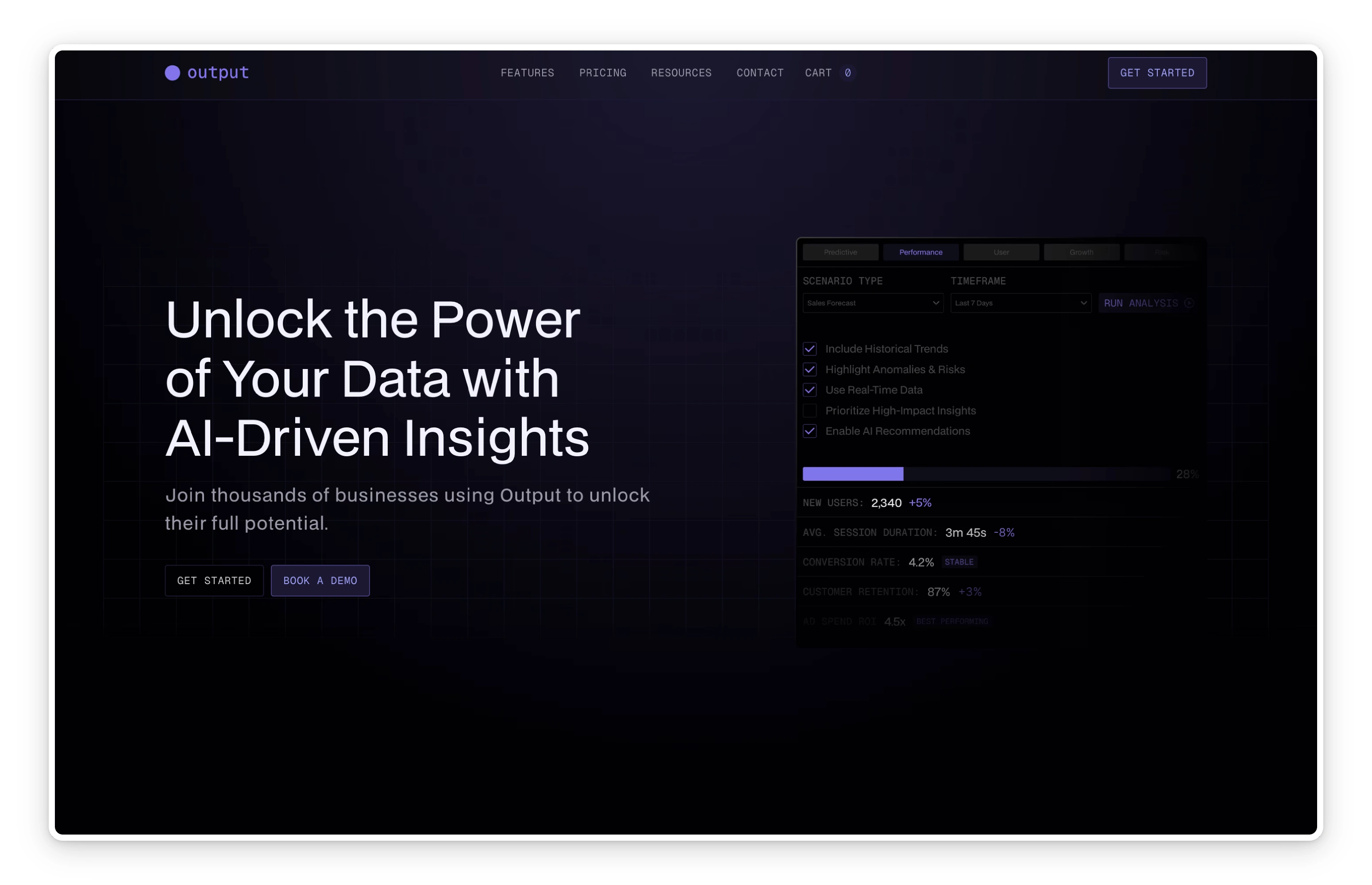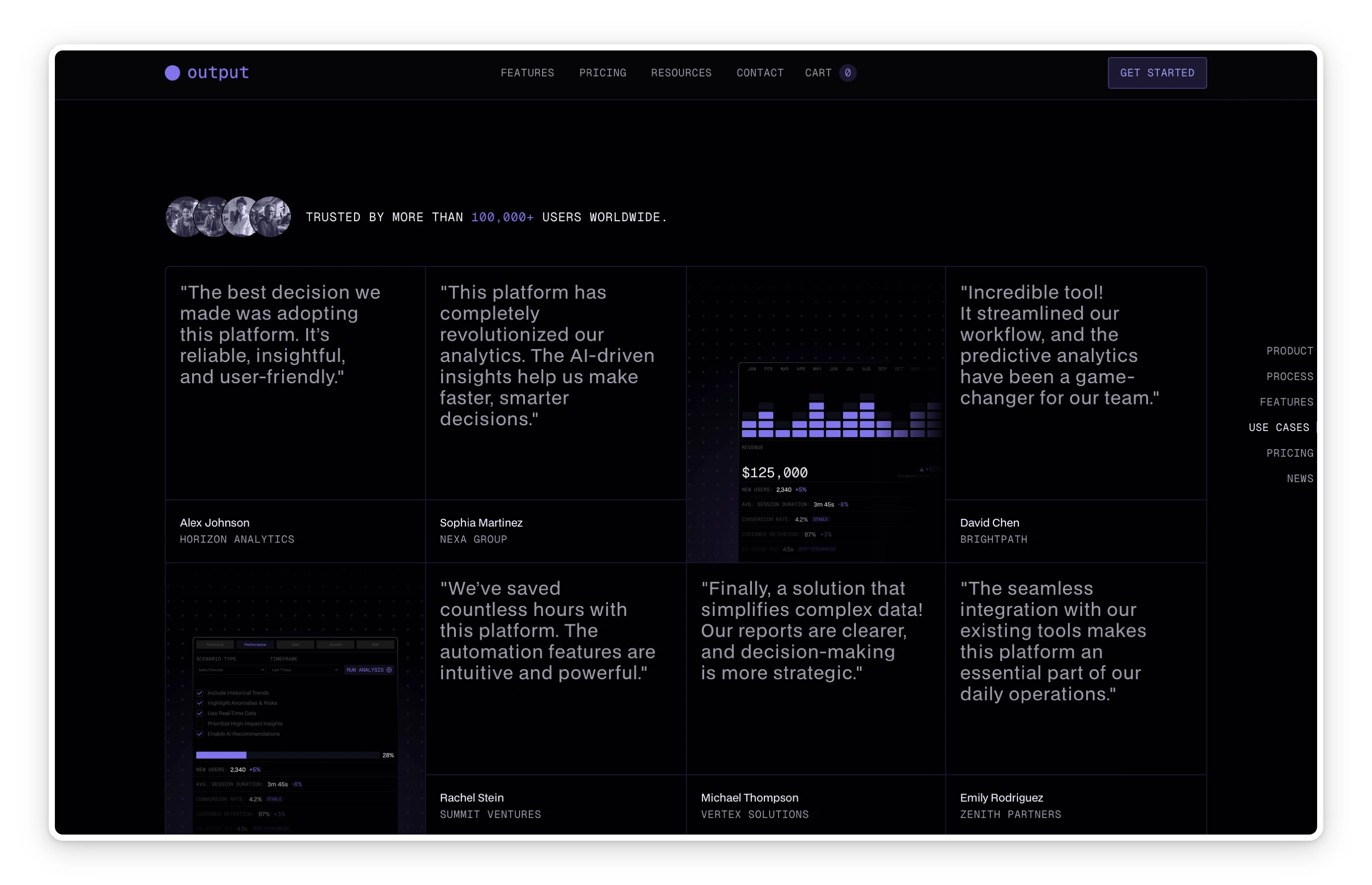 Output was developed with a focus on clarity, scalability, and brand impact. From eCommerce and CMS integration to smooth animations and responsive design, it provides a complete setup for SaaS platforms and AI-driven businesses to establish a professional online presence.