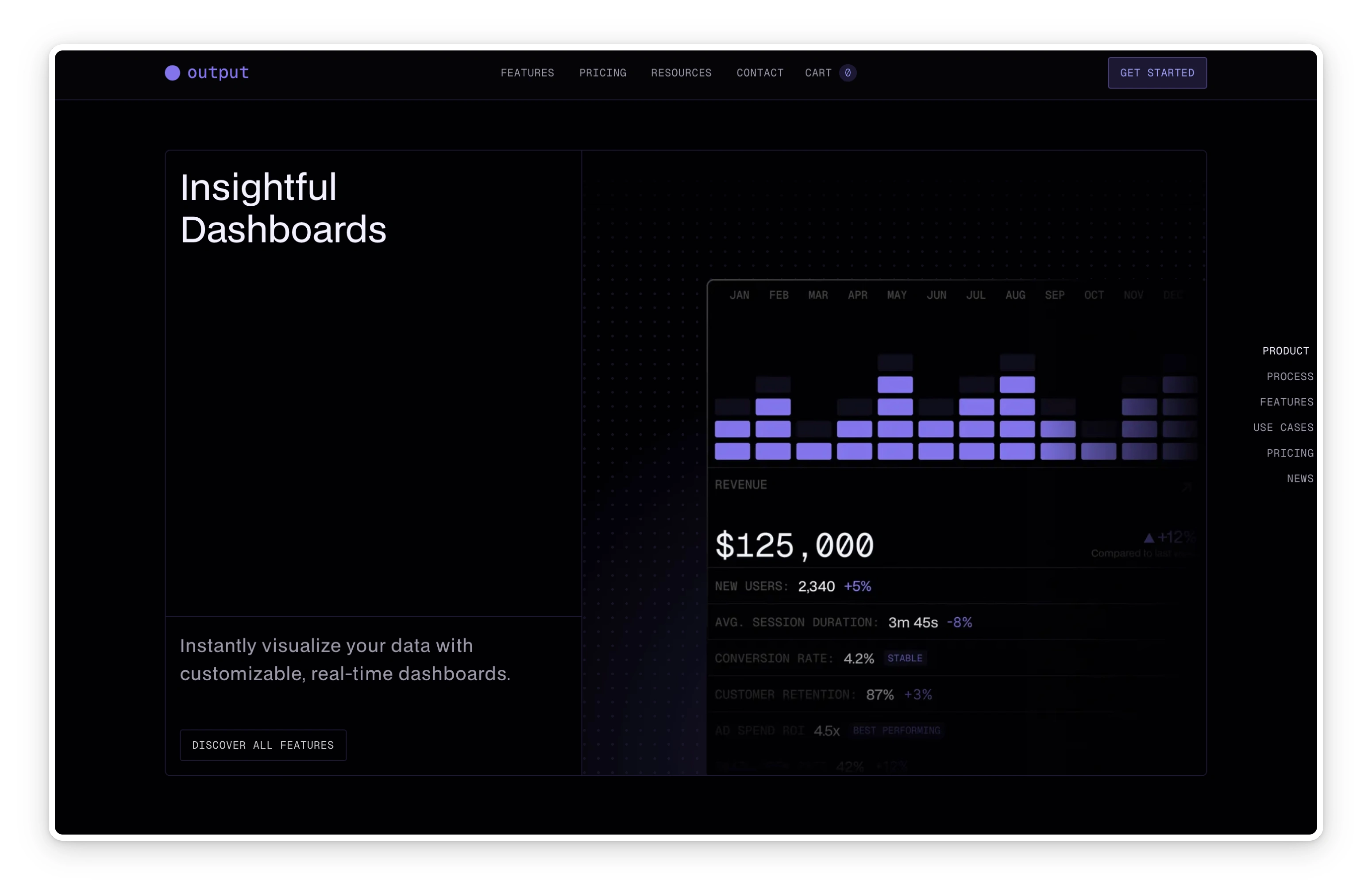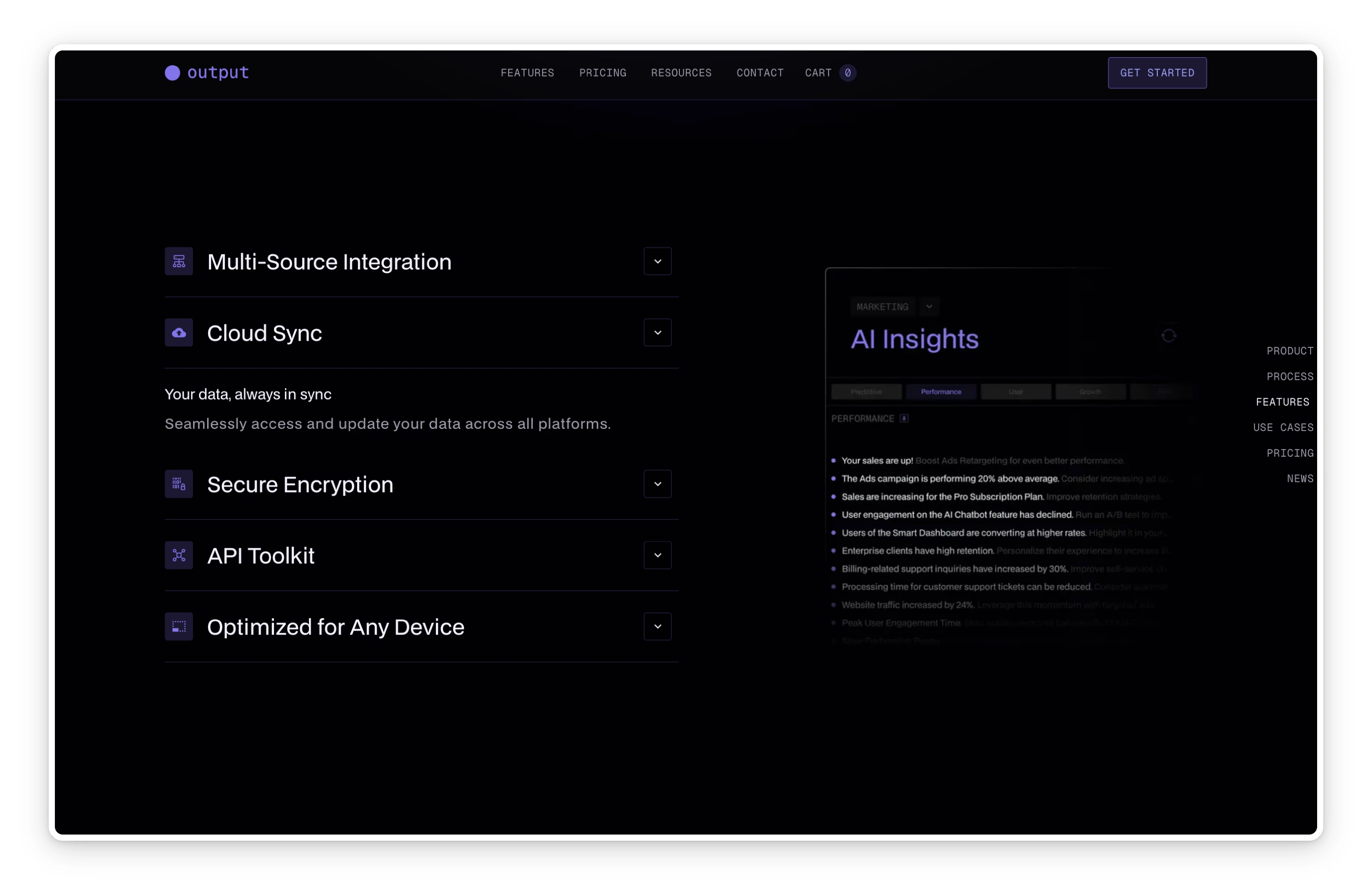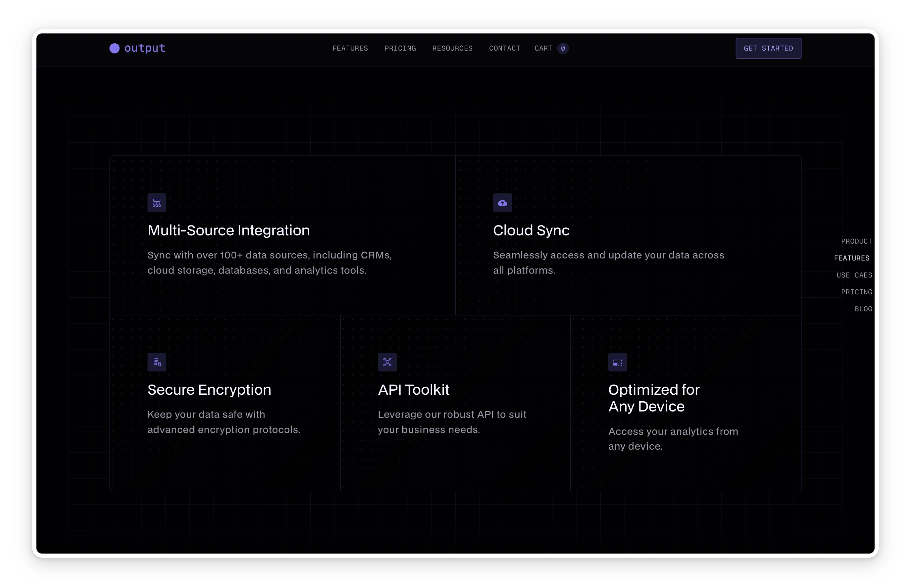 Output is a Webflow project crafted for SaaS companies, AI startups, and digital platforms needing a polished, product-focused online presence. Its dark, modern design system, combined with custom mockups and scalable CMS features, provides a strong foundation to present software, outline features, and build brand trust.