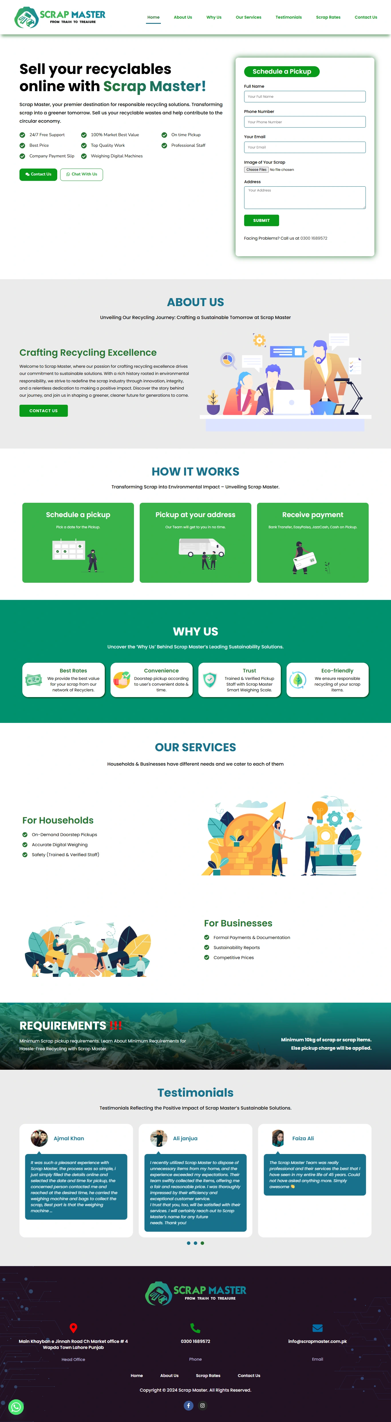 Goal: To build a modern, responsive, and professional website for a scrap and recycling business. The aim was to display daily scrap rates, attract more inquiries, and establish a credible online presence.