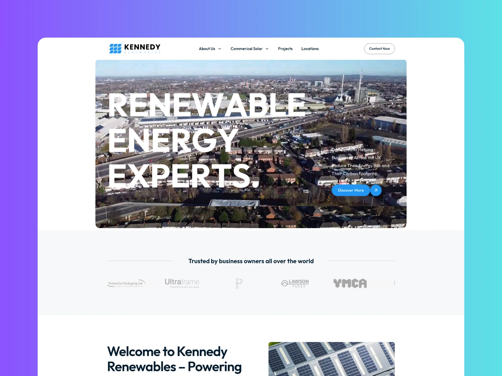 I redesigned the Kennedy Renewables website to better showcase their renewable energy projects and improve lead capture. The new design, created in Figma, focused on a clean, modern layout that highlights their work while guiding visitors toward key actions.