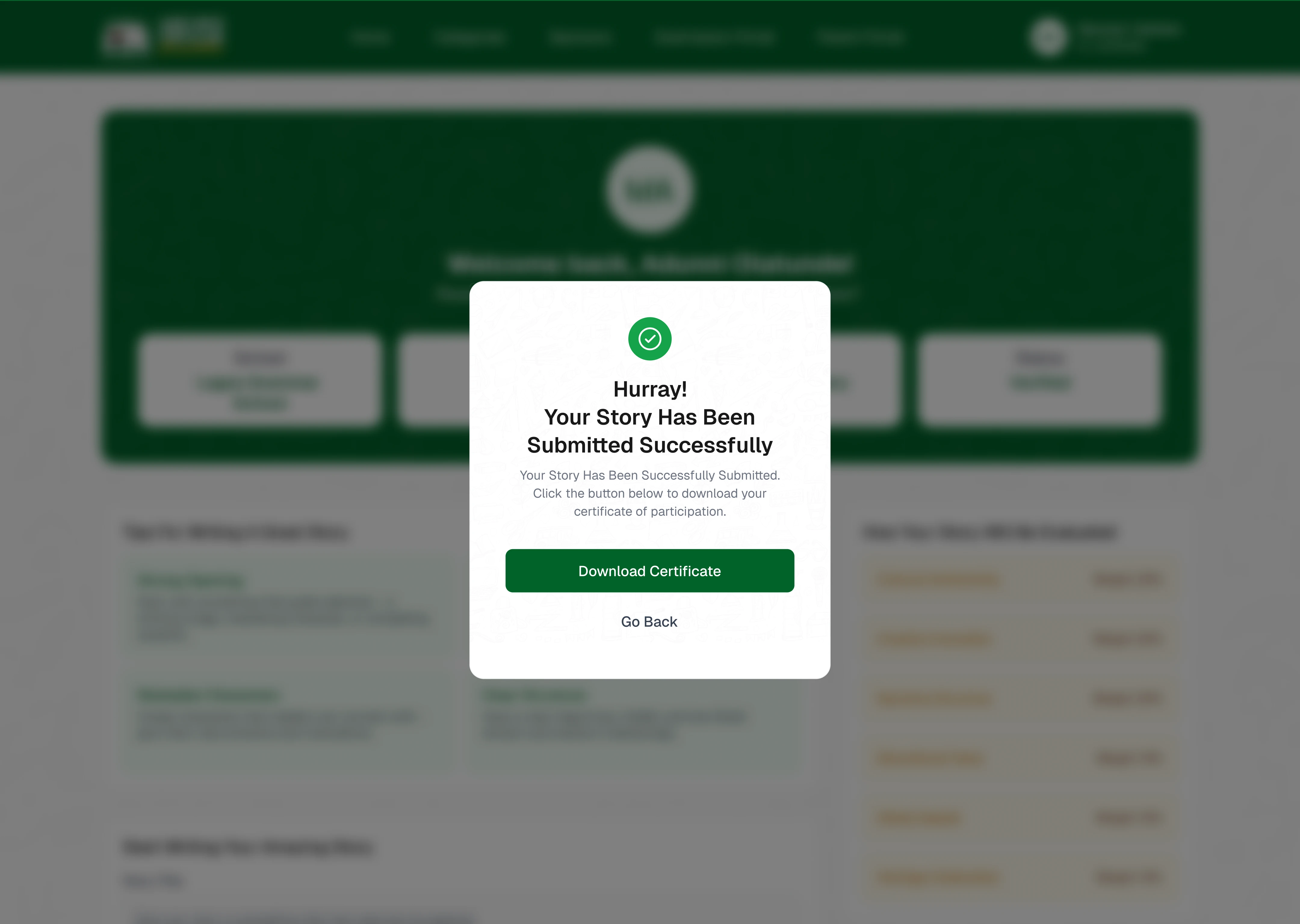 Storytelling is a powerful tool for cultural preservation and creative expression, but traditional submission methods often limit reach and engagement. The goal was to design a web application that makes participation seamless for students, guides them through submission requirements, and aligns with the competition’s educational mission—all while handling potentially large volumes of entries and maintaining clarity, accessibility, and responsiveness.