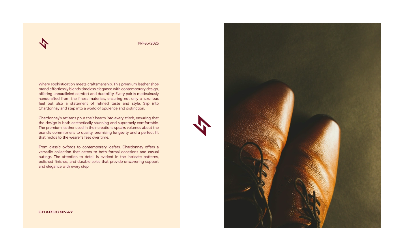 Welcome to Chardonnay, where we masterfully blend sophistication, comfort, and craftsmanship in every step. Our premium leather shoes are more than mere footwear; they are a statement of style and luxury. At Chardonnay, we are passionate about creating timeless pieces that resonate with the modern, discerning individual, elevating every occasion with grace and poise. Our dedication to perfection ensures each pair of shoes reflects our unwavering commitment to quality and innovation.