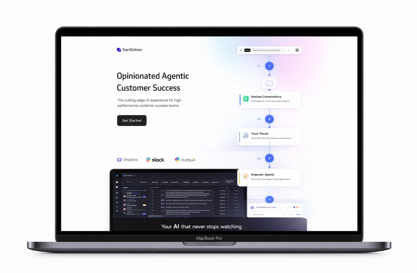 Designed and developed a modern, high-converting website in Framer for StartDeliver, an AI-powered customer success platform. The website features a sleek SaaS-focused layout, responsive design, smooth animations, and clear messaging to showcase the product’s value proposition.