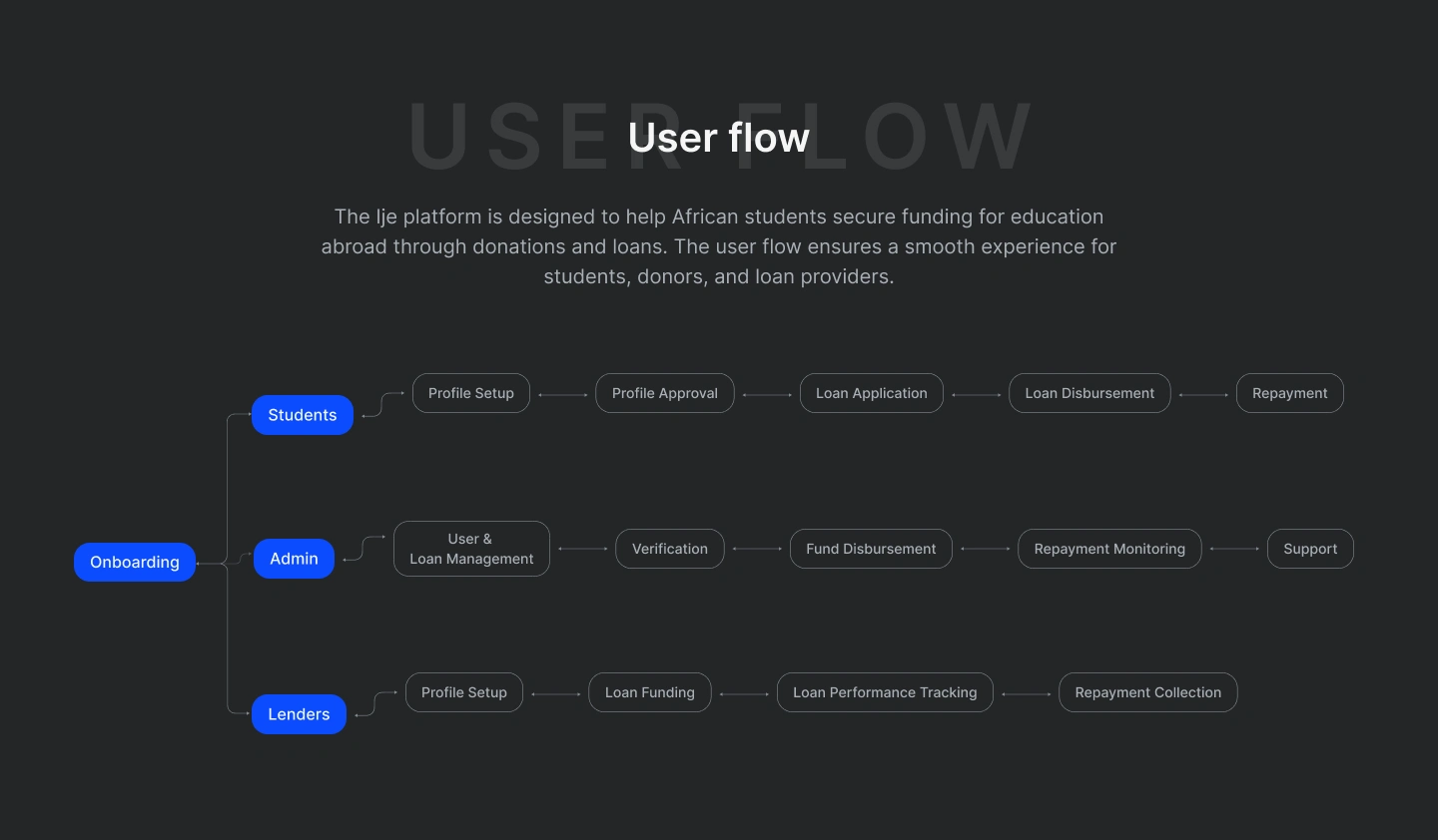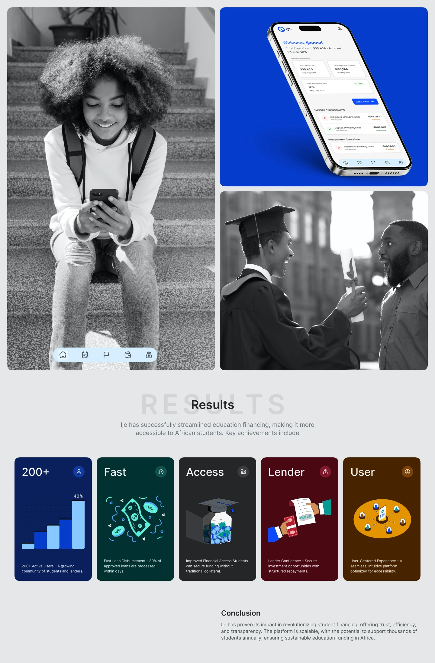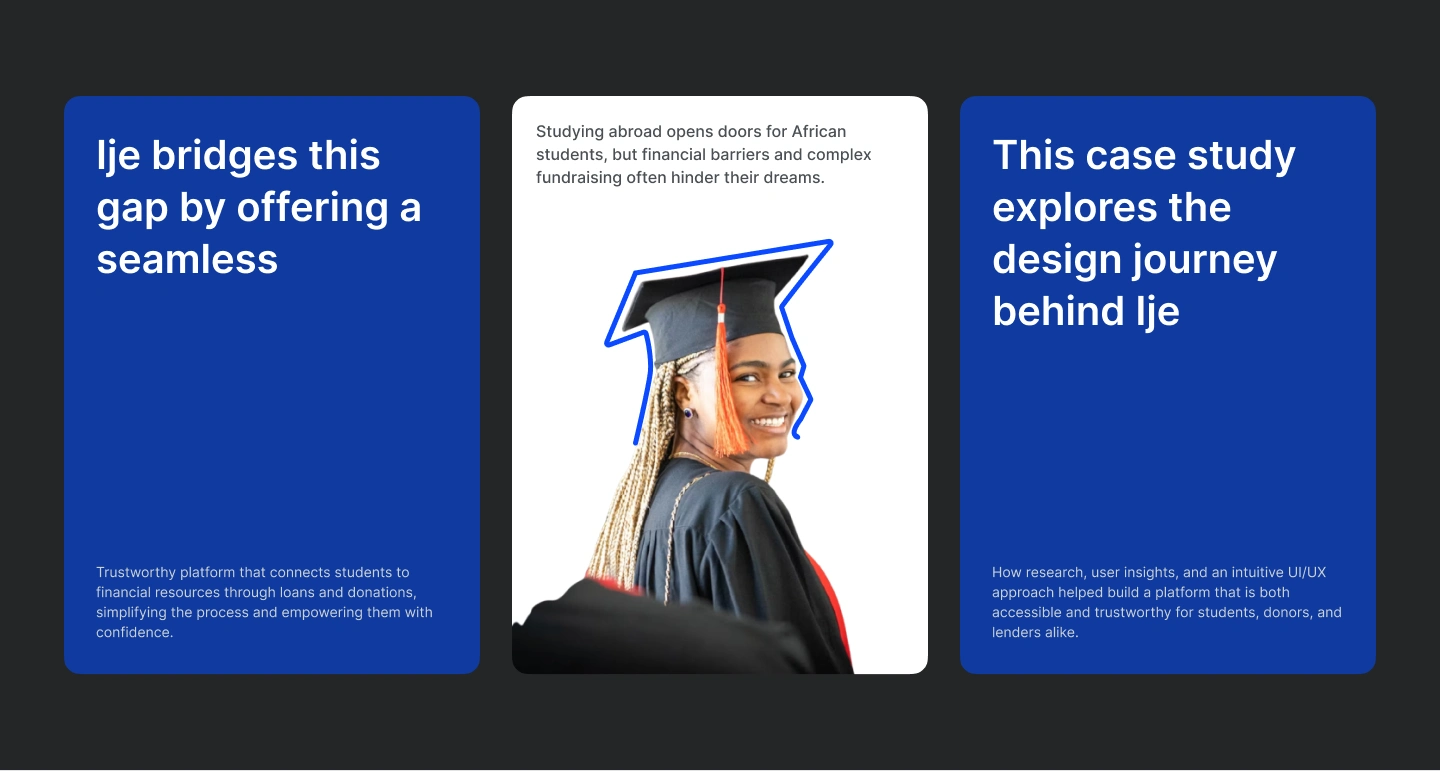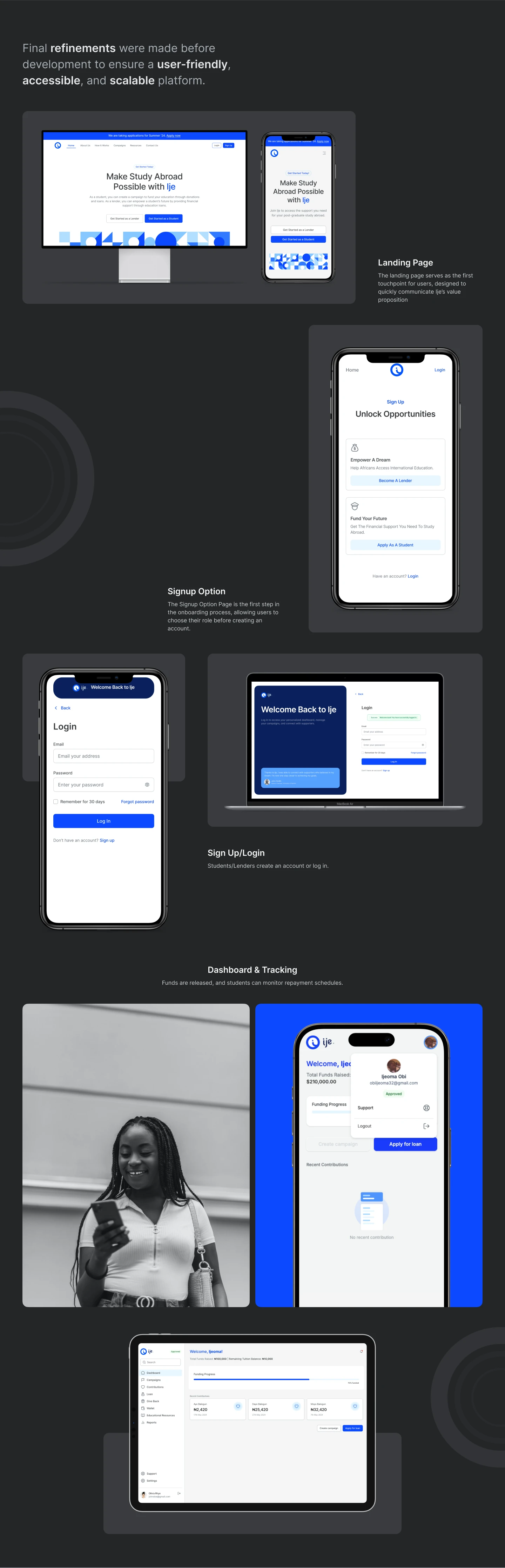 Designed Ije, a platform making it easier for African students to fund education abroad with donations and loans in a simple, trusted way.