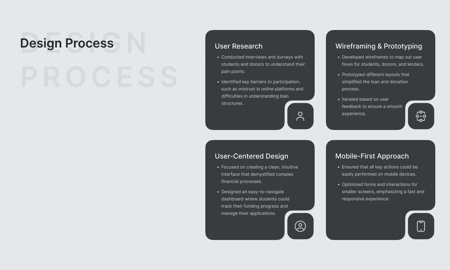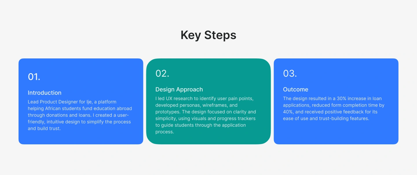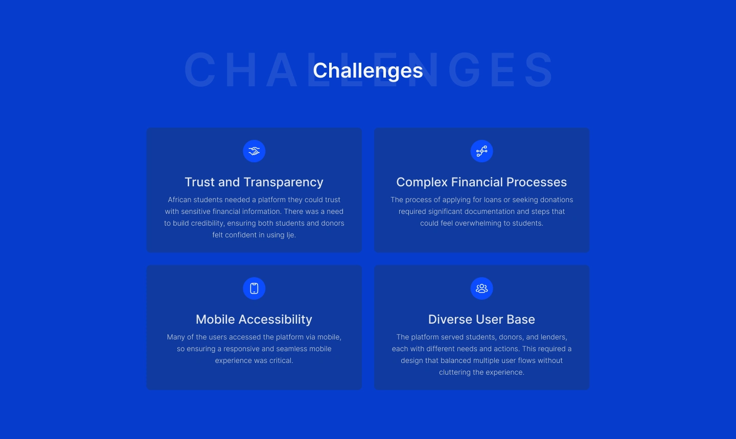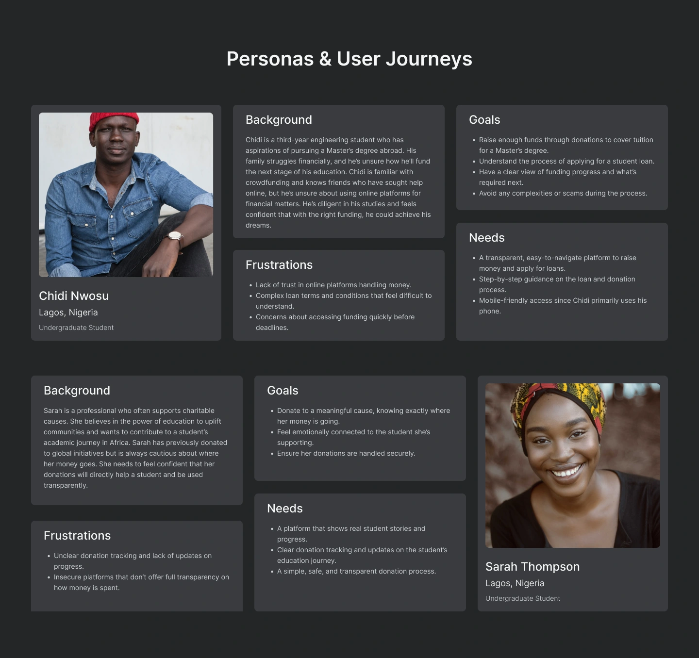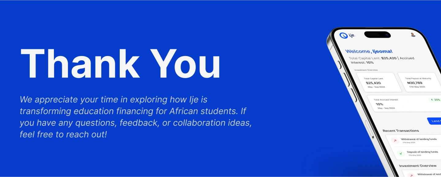Designed Ije, a platform making it easier for African students to fund education abroad with donations and loans in a simple, trusted way.