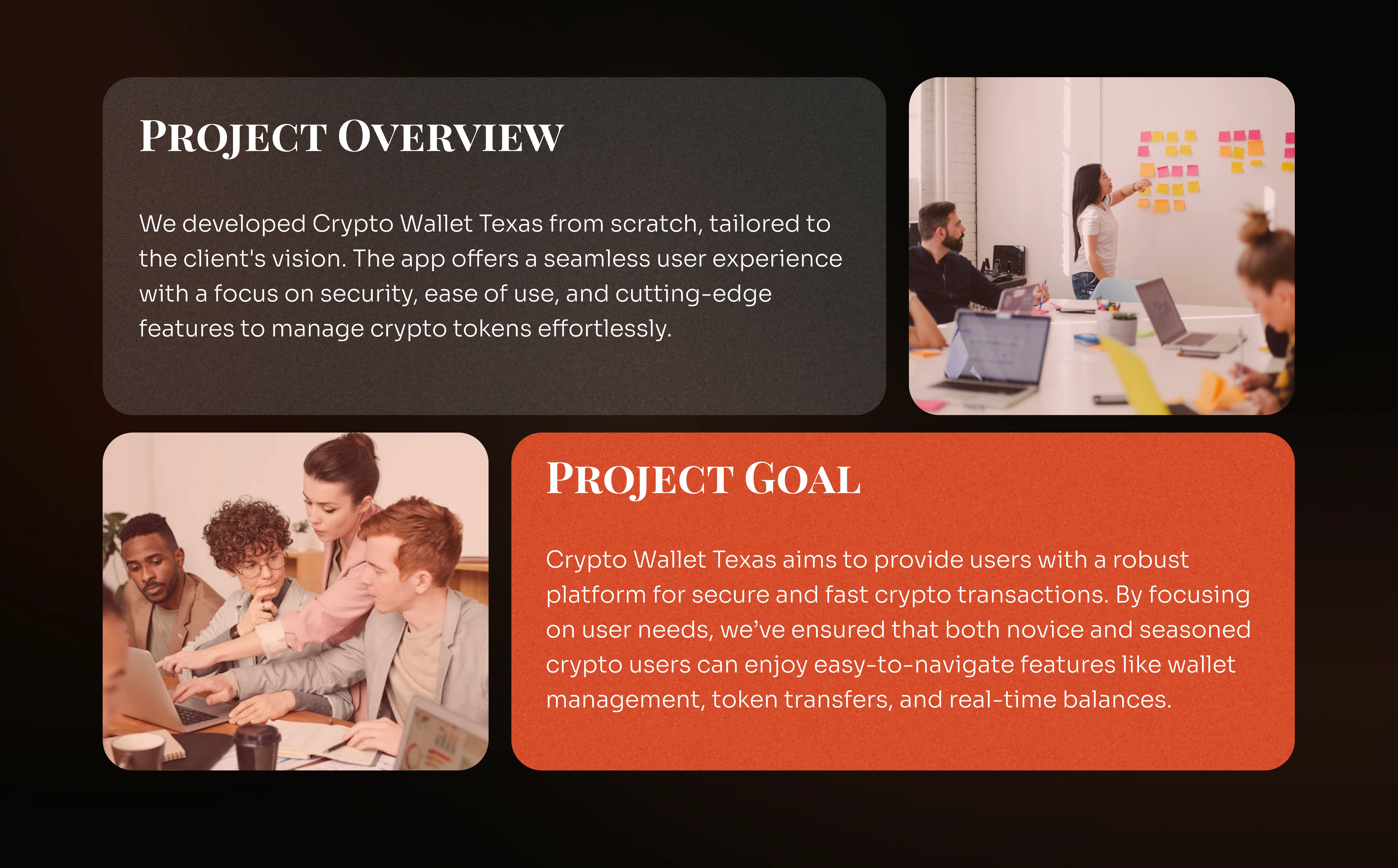 "Crypto Wallet Texas" is a state-of-the-art mobile application designed to simplify crypto transactions while ensuring top-notch security. Built from scratch, this app offers an intuitive and user-friendly experience, enabling both novice and experienced users to manage their digital assets seamlessly. The app features key functionalities like secure wallet management, token transfers, and real-time balance tracking. Whether you're sending, receiving, or buying tokens, the design ensures smooth navigation across all features with a focus on security and ease of use.