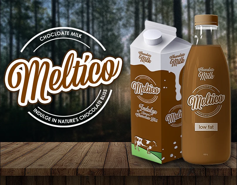 Meltico is a fun yet sophisticated chocolate milk brand, showcasing a cohesive visual identity that appeals to both kids and adults.