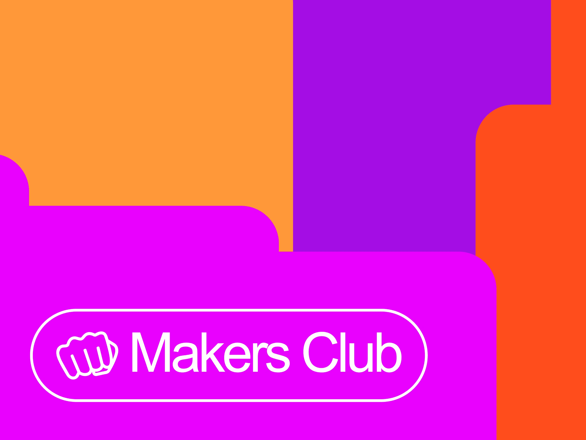 Makers Club is the evolution of existing Nocode & AI community; NoCode Alliance. Working closely with the client for many years across multiple projects in this space, he reached out for a brand sprint for Makers Club. Their ethos is to "Assemble curious people to learn new things, make friends, and MAKE things. Whether it's apps, workflows or AI Systems". The client had a clear vision for the brand mark - a fist pump to represent teamwork, success & community so I set about creating a bespoke symbol and a bold, playful brand and application pattern.