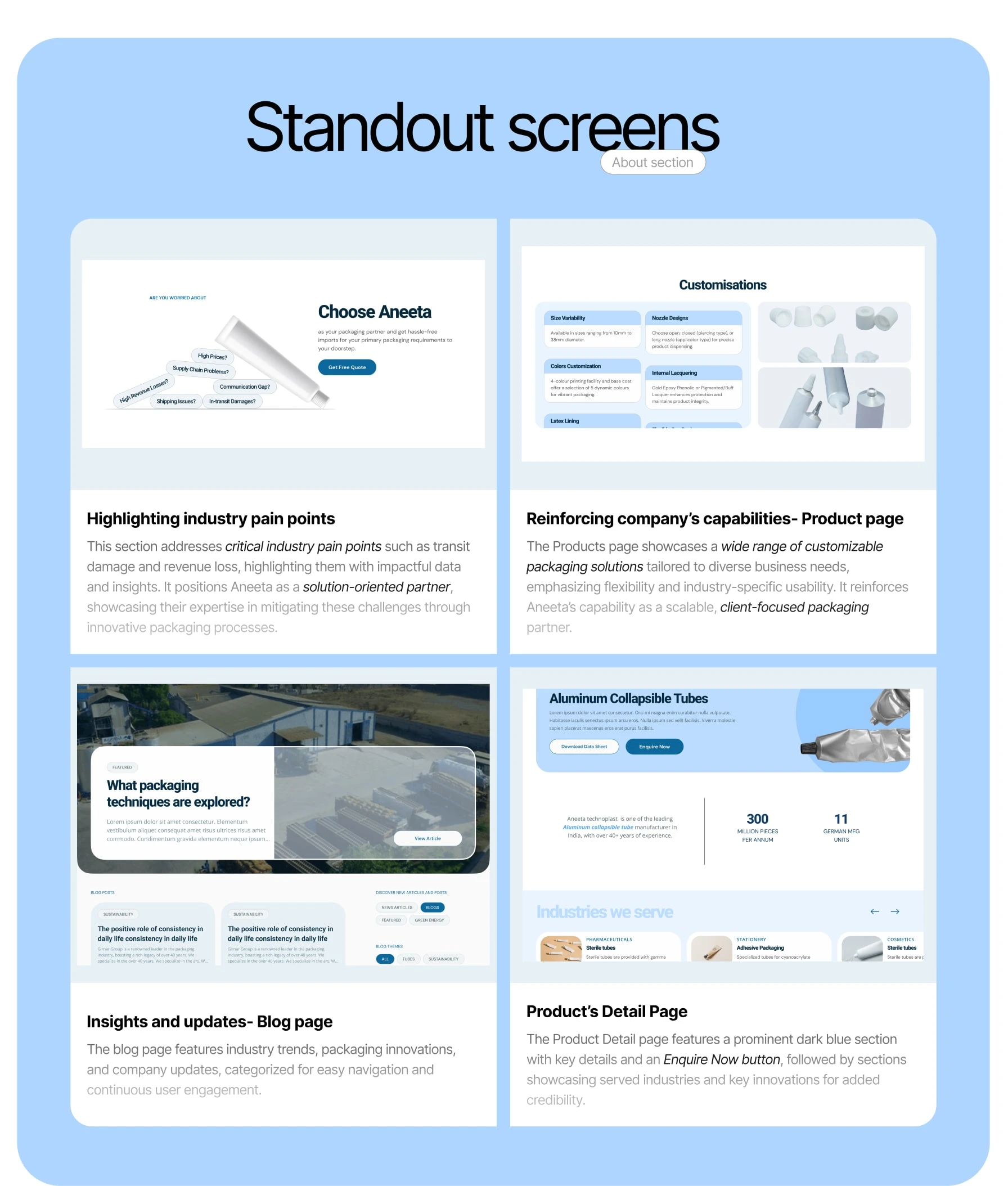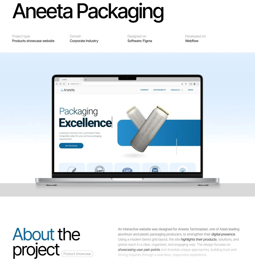 The final website presents Aneeta India as reliable and established. It communicates depth without complexity, making it easy for visitors to understand the brand’s strengths and experience, while reinforcing trust through a calm, considered digital presence.