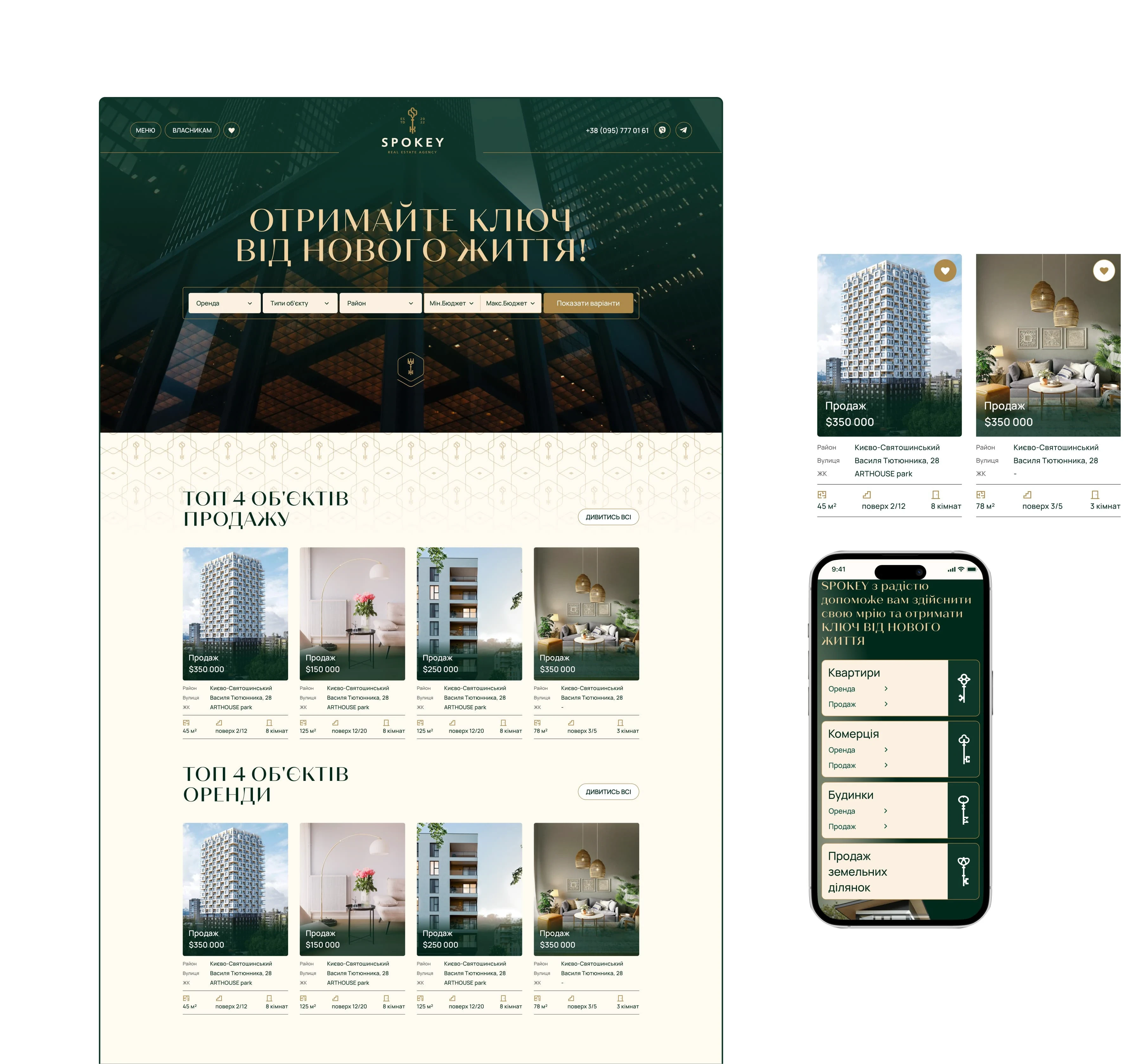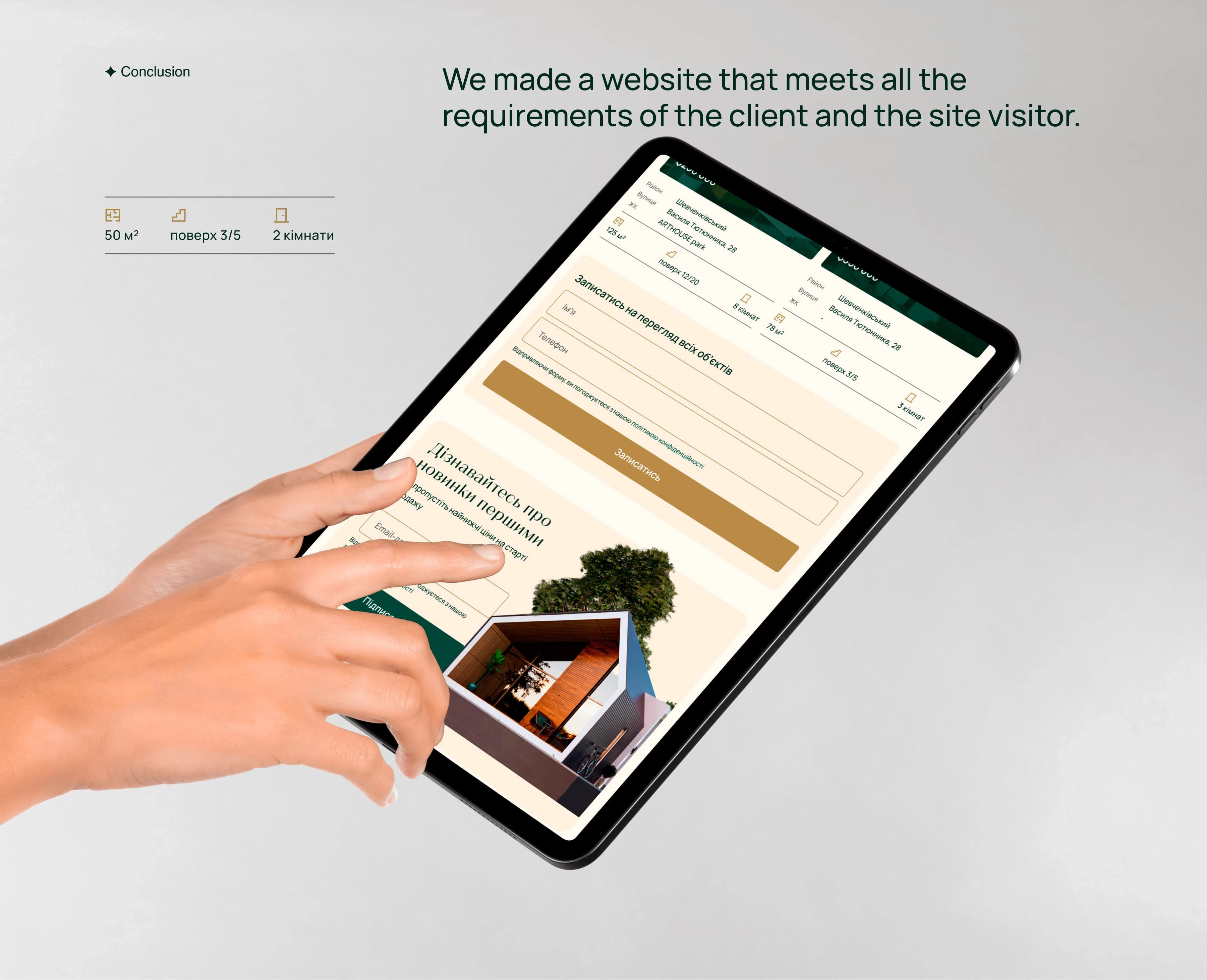 Real estate agency. The main idea is to sell and rent objects from the first screen. The client wants the site to be both branding and selling well.
