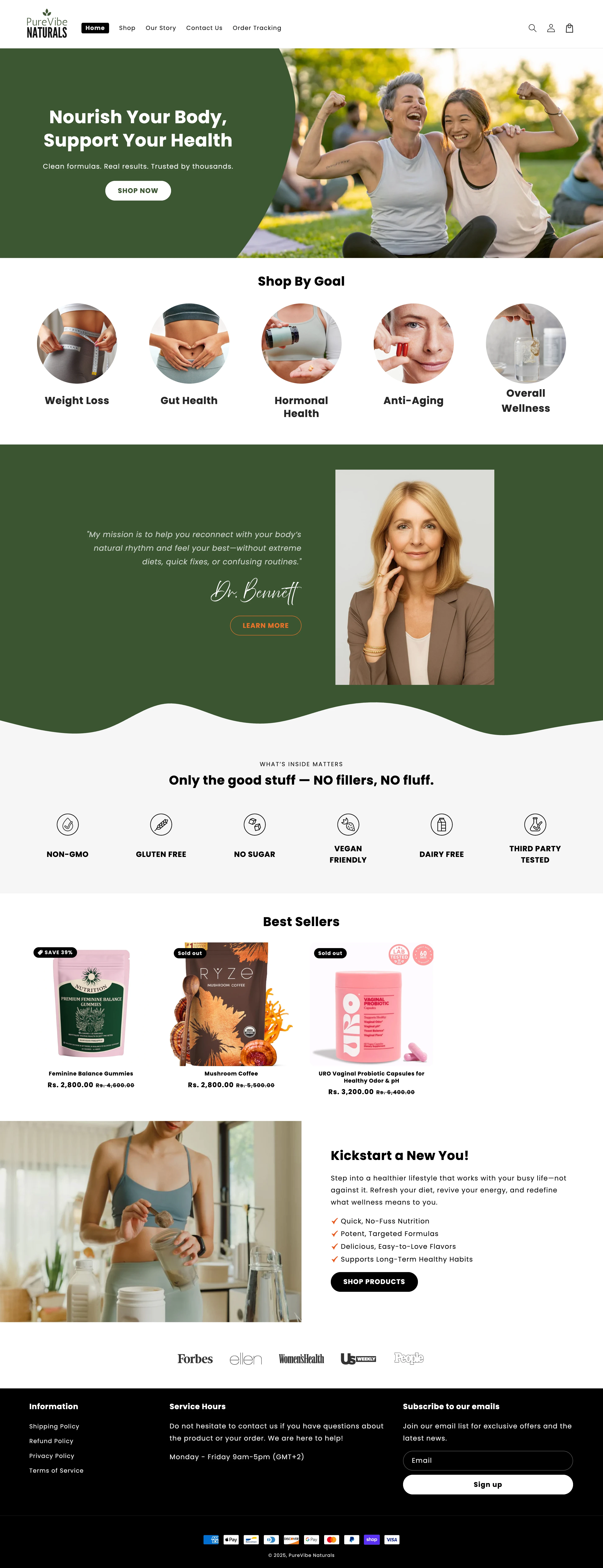 I designed and developed a fully customized Shopify storefront for PureVibe Naturals — a clean-label wellness brand focused on purity, transparency, and ingredients that matter.
