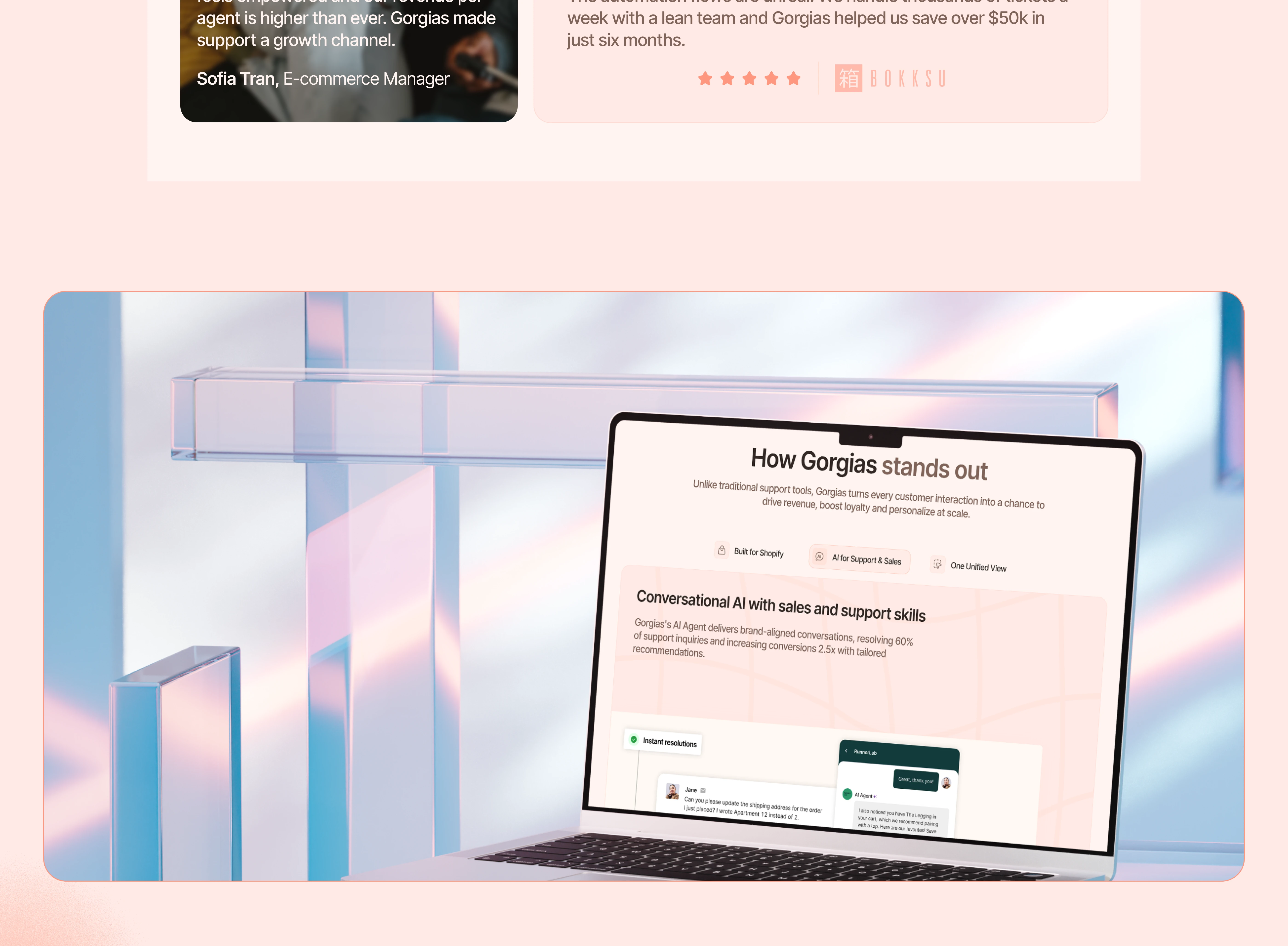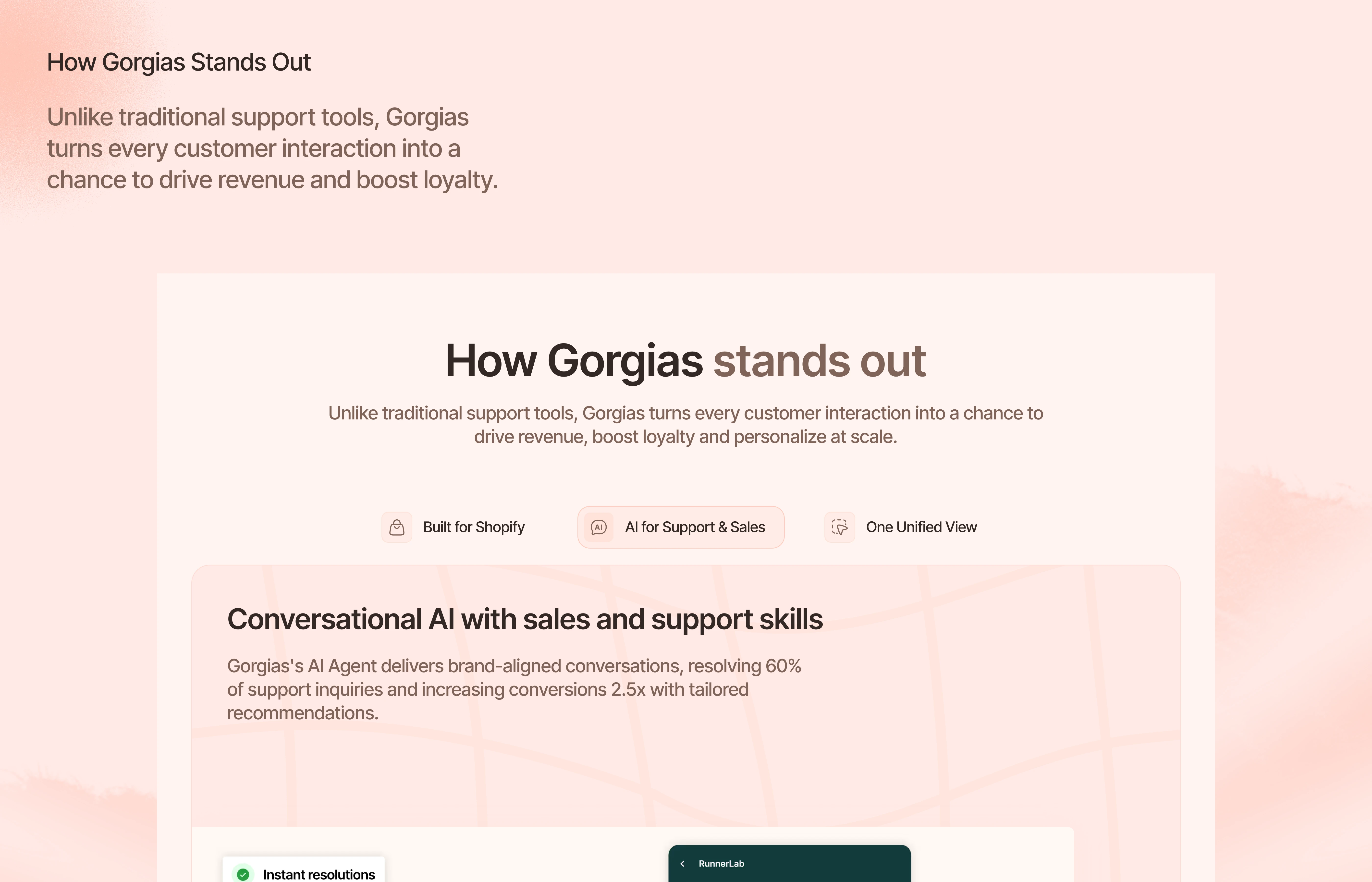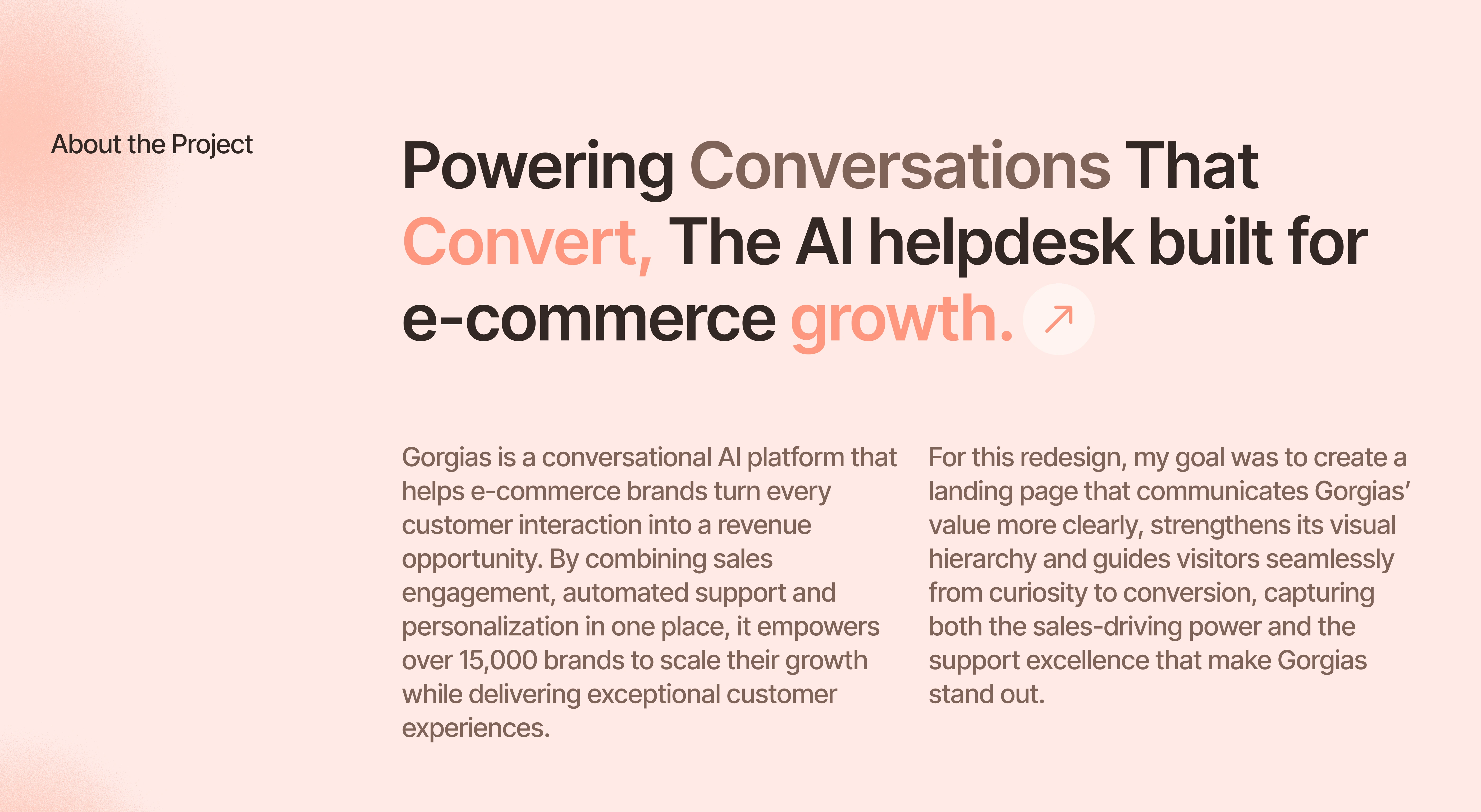 This conceptual redesign focuses on creating a cleaner, more engaging landing page that clearly communicates Gorgias’ values guides users toward conversion.
