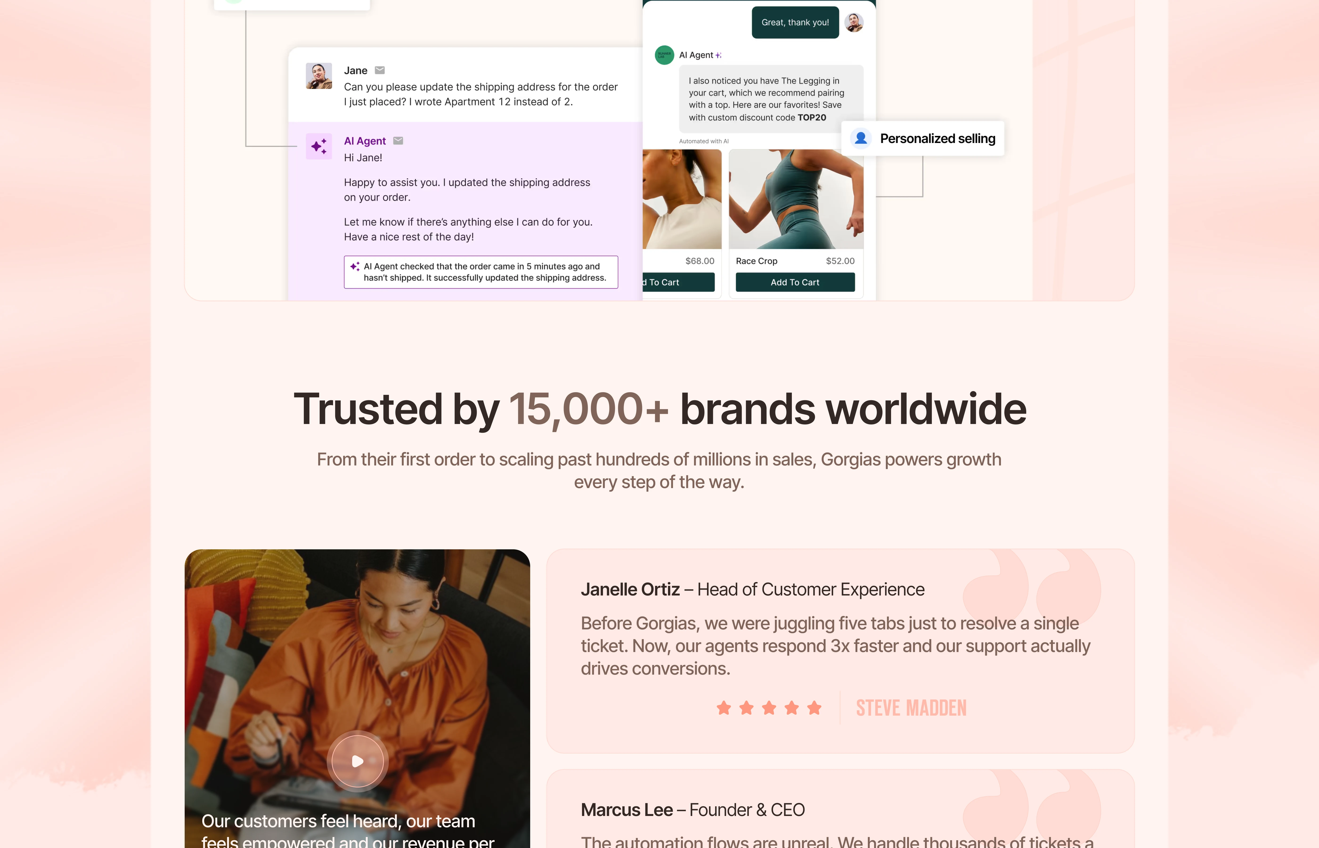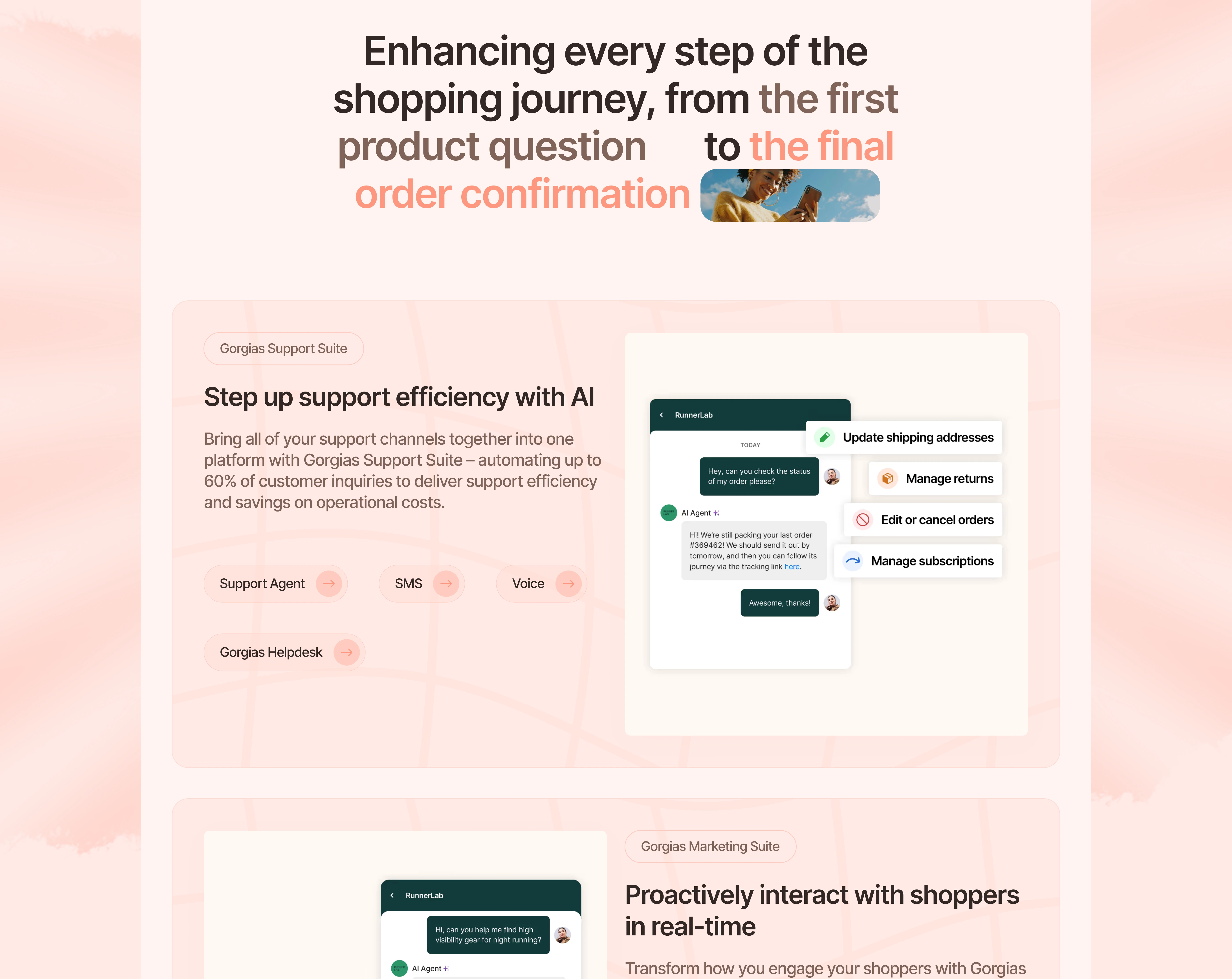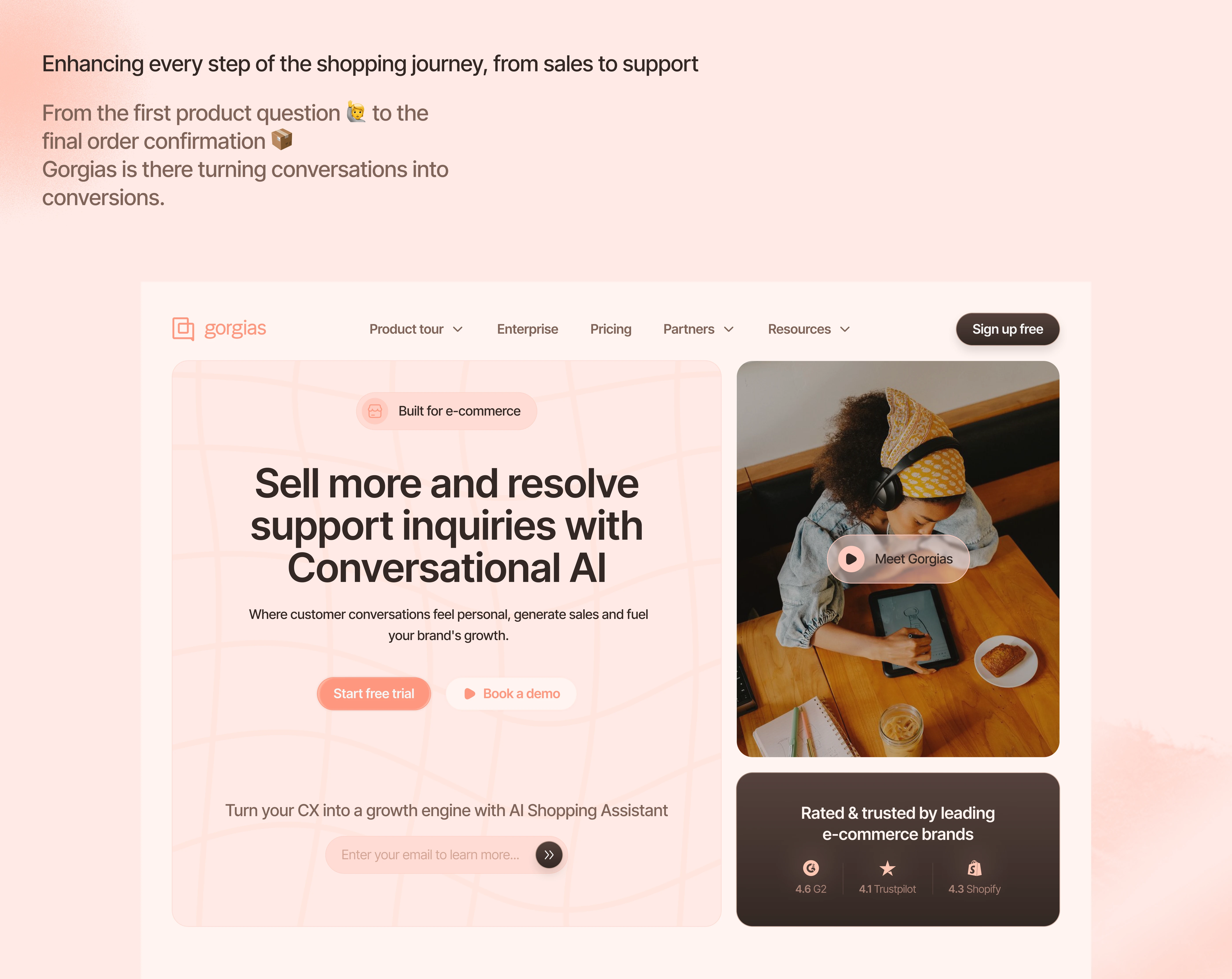 This conceptual redesign focuses on creating a cleaner, more engaging landing page that clearly communicates Gorgias’ values guides users toward conversion.