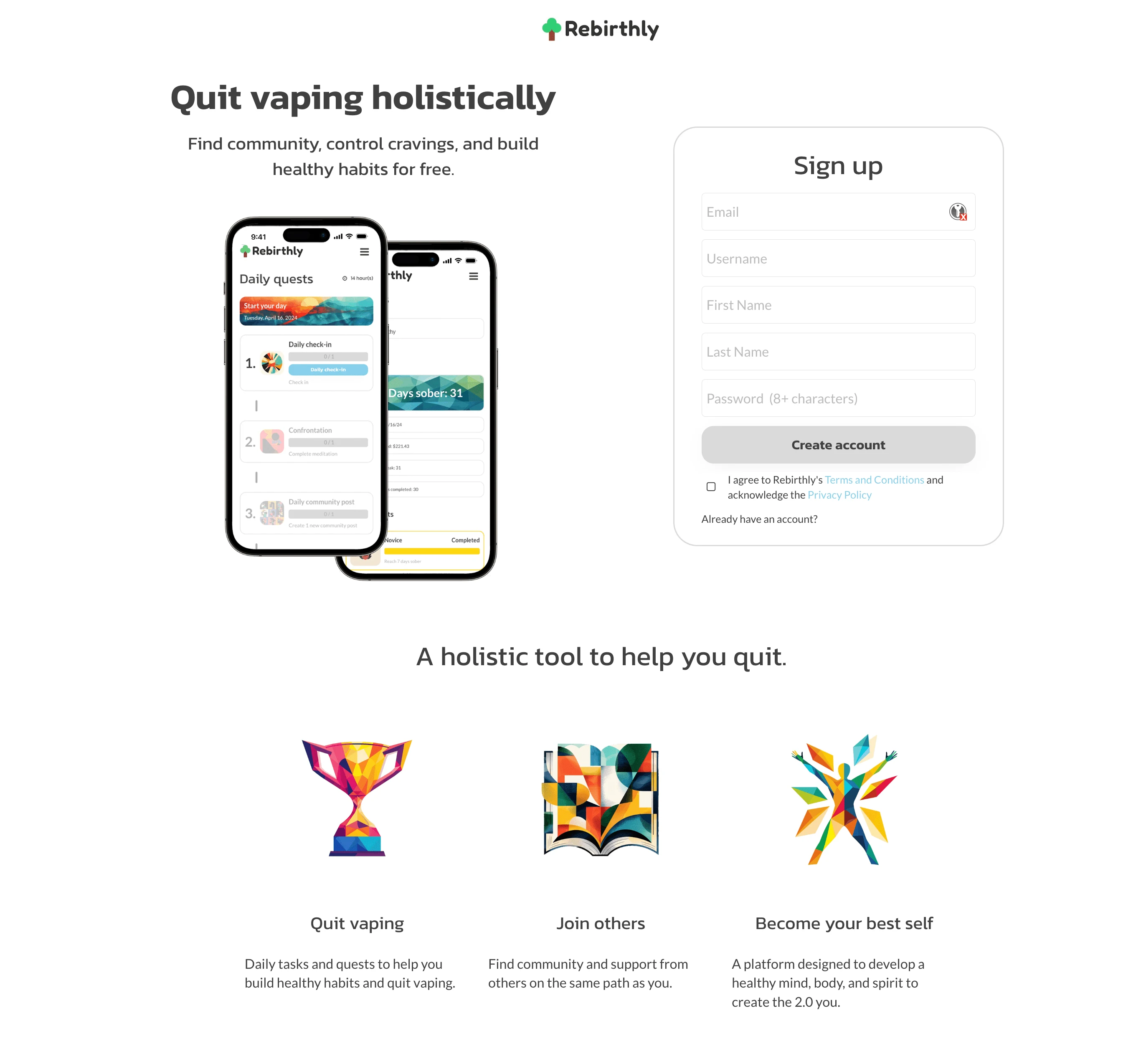 The application is free to use and it's core feature is the Daily Quests section which follows the same exact protocols I've used on myself to quit vaping. My hypothesis was that if this has worked for me, I can package the structure in a unique way for others to easily follow to quit their bad habits.
