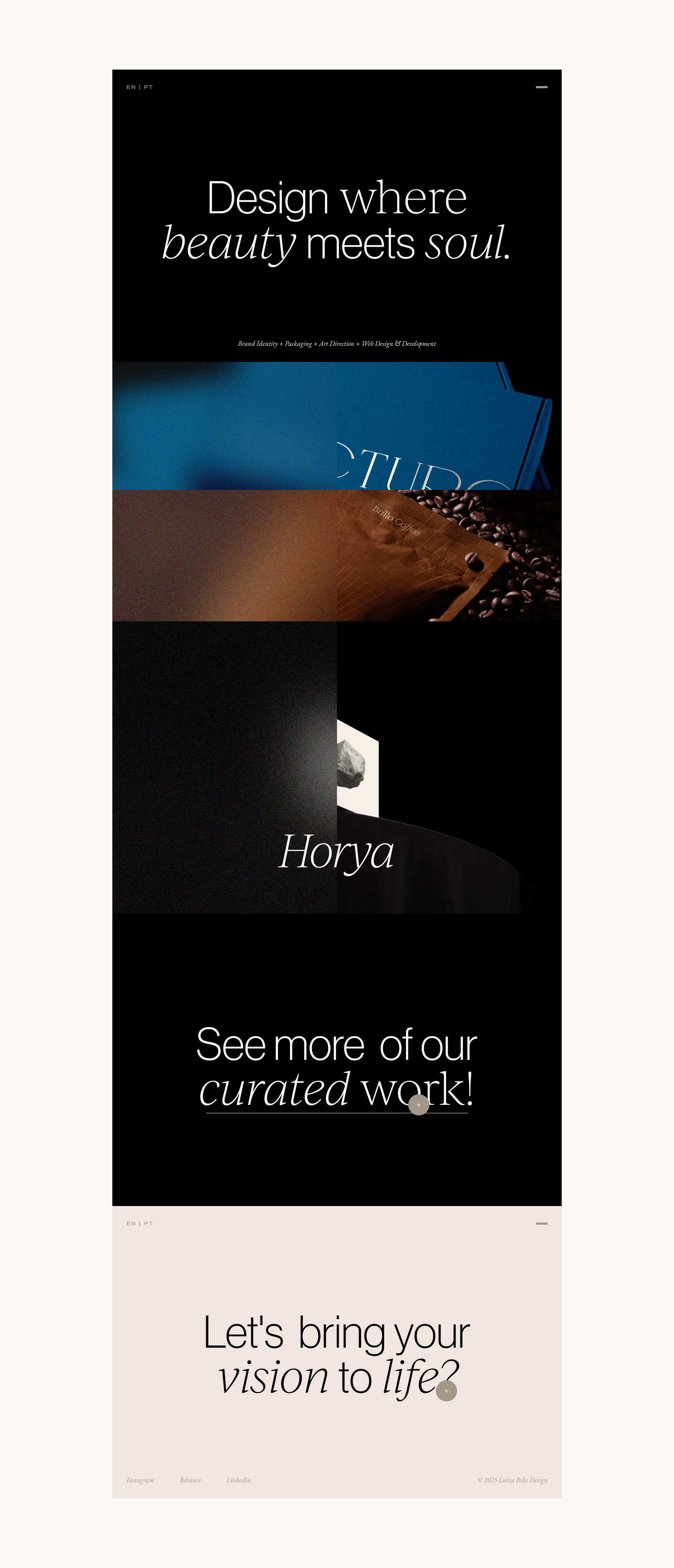 Every detail was thoughtfully orchestrated using the powerful animation frameworks of Locomotive Scroll and GSAP, breathing motion and life into every scroll, hover, and transition. The styling was meticulously crafted with SCSS, allowing for precision, elegance, and a deeply immersive aesthetic that mirrors the artistry behind every project showcased.