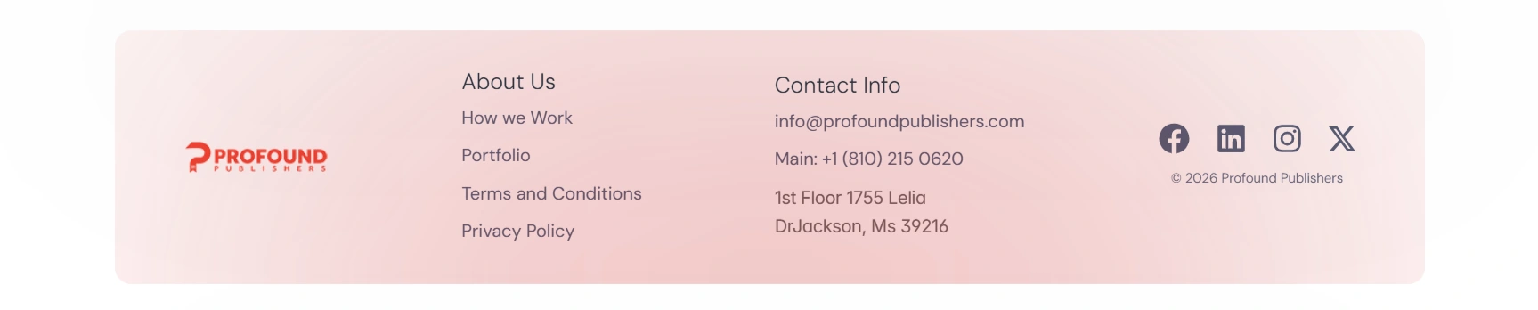 Profound Publishers is a premium publishing service positioned around global reach, editorial support, and high impact book launches. The existing website content was placeholder material, so the focus of this project was to design a high end, conversion focused interface that clearly communicates value and builds trust.