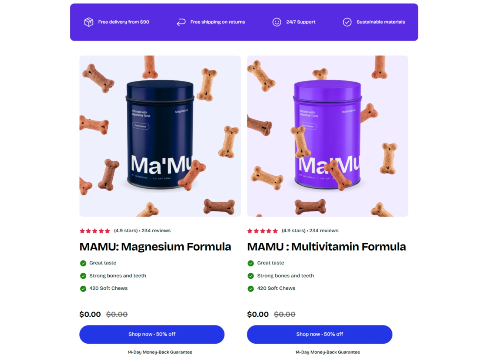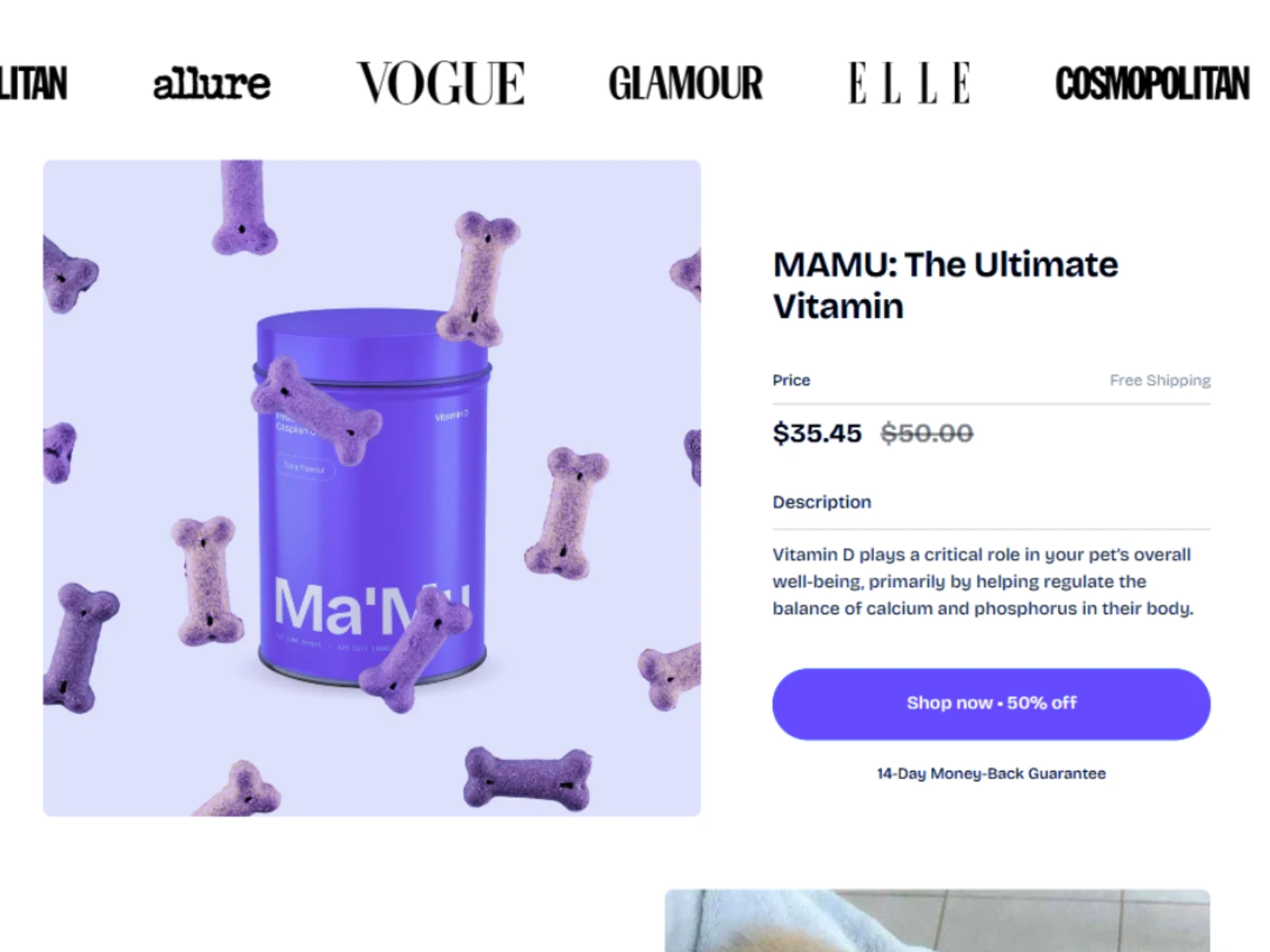 Designed a high-converting Shopify landing page for Ma'Mu, optimizing user experience and boosting sales with intuitive design and strategic CTAs.