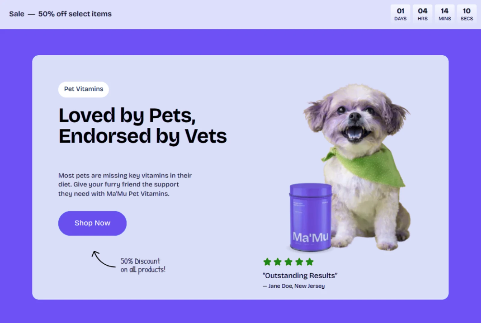 Developed using Instant for fast, flexible design and Shopify for a robust e-commerce experience. The design was optimized through A/B testing to maximize conversions.