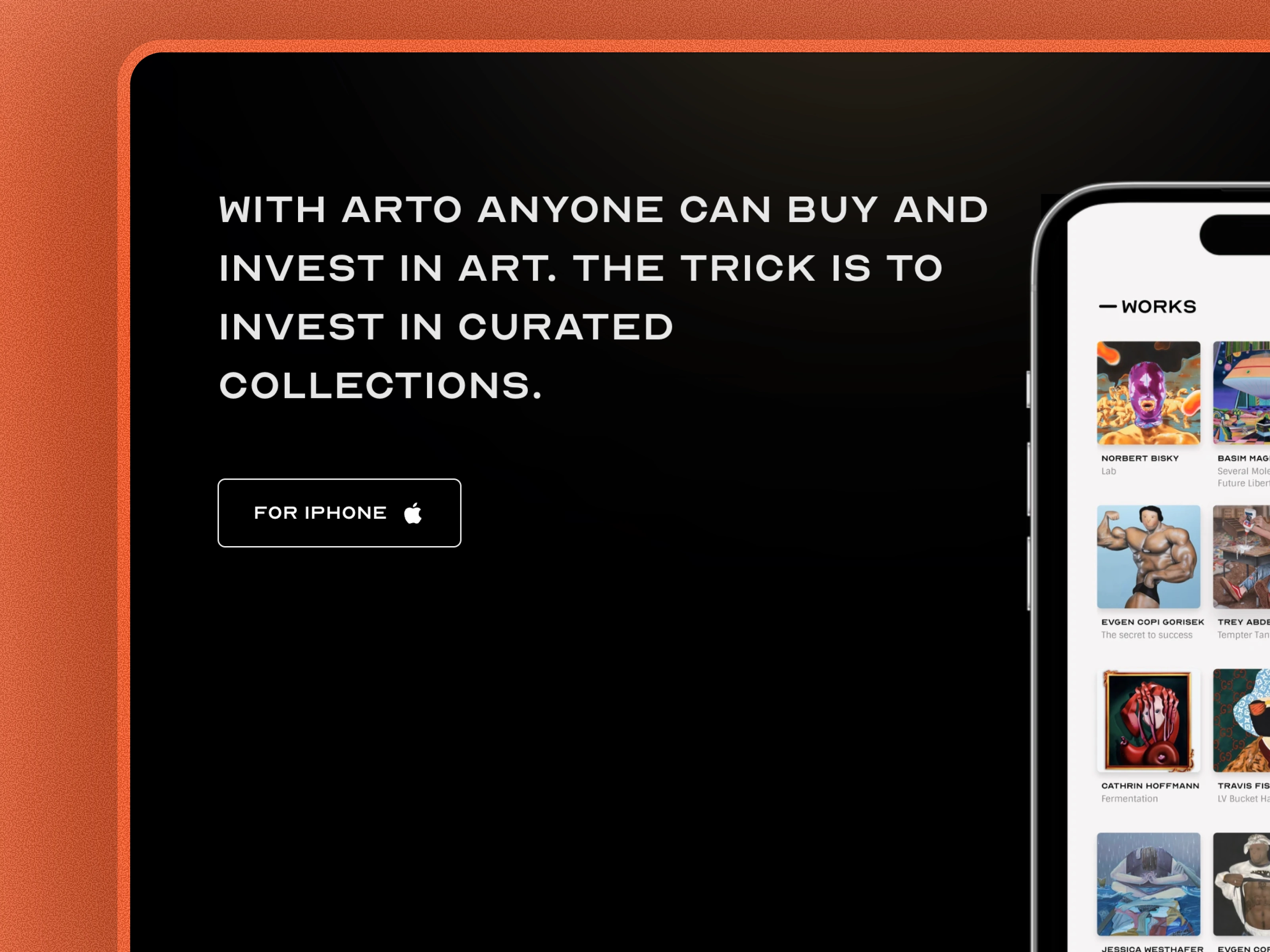 For Arto, a platform that lets anyone invest in art collections like an ETF, we designed a modern website in Framer and developed a brand identity that balances culture with finance. The site communicates Arto’s core value propositions—fractional ownership, portfolio diversification, and reinvestment options—while also highlighting unique lifestyle benefits such as exclusive events, home rentals, and access to rising artists. With a sleek, trust-focused design, Arto positions art as an accessible and rewarding asset class for the next generation of investors.