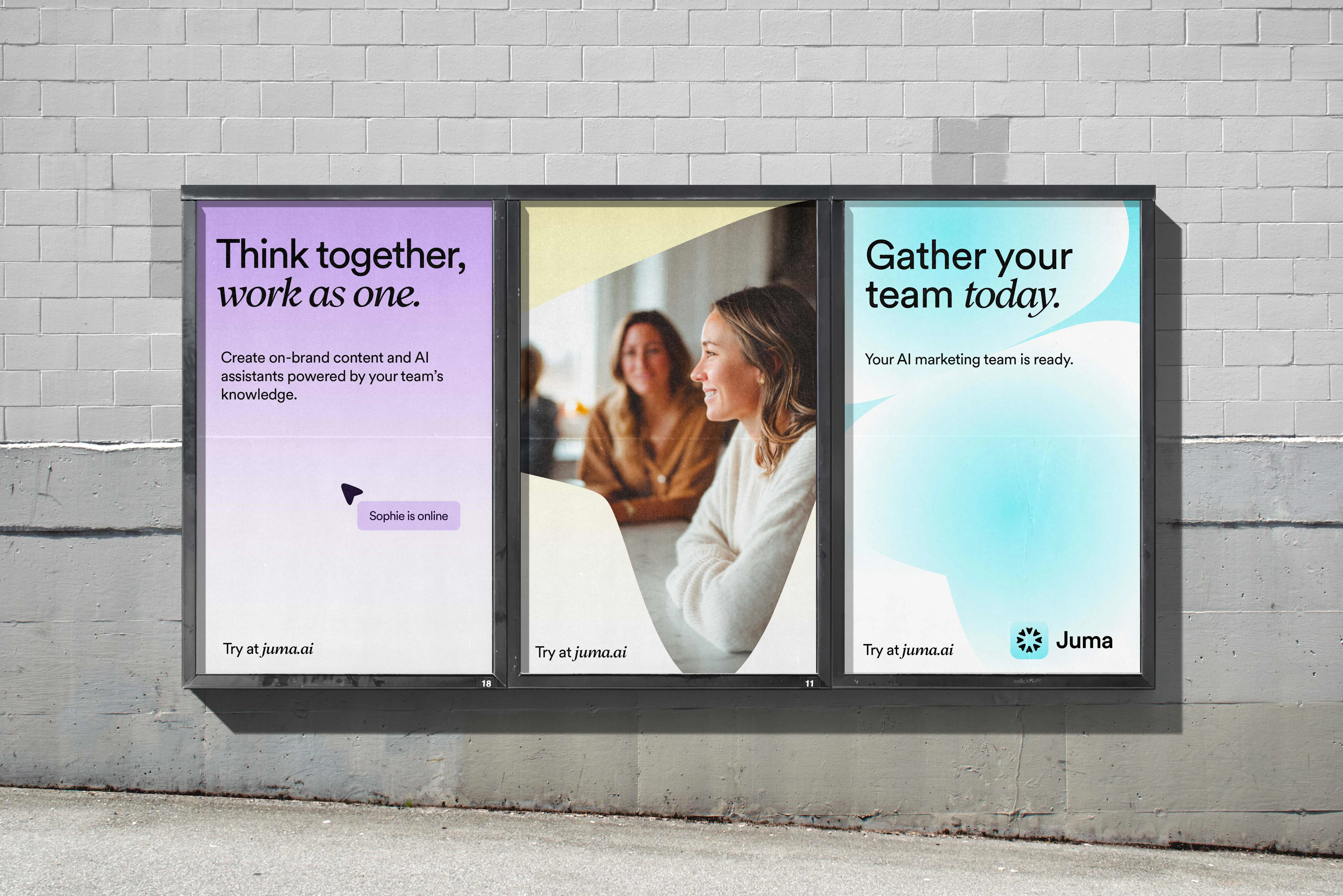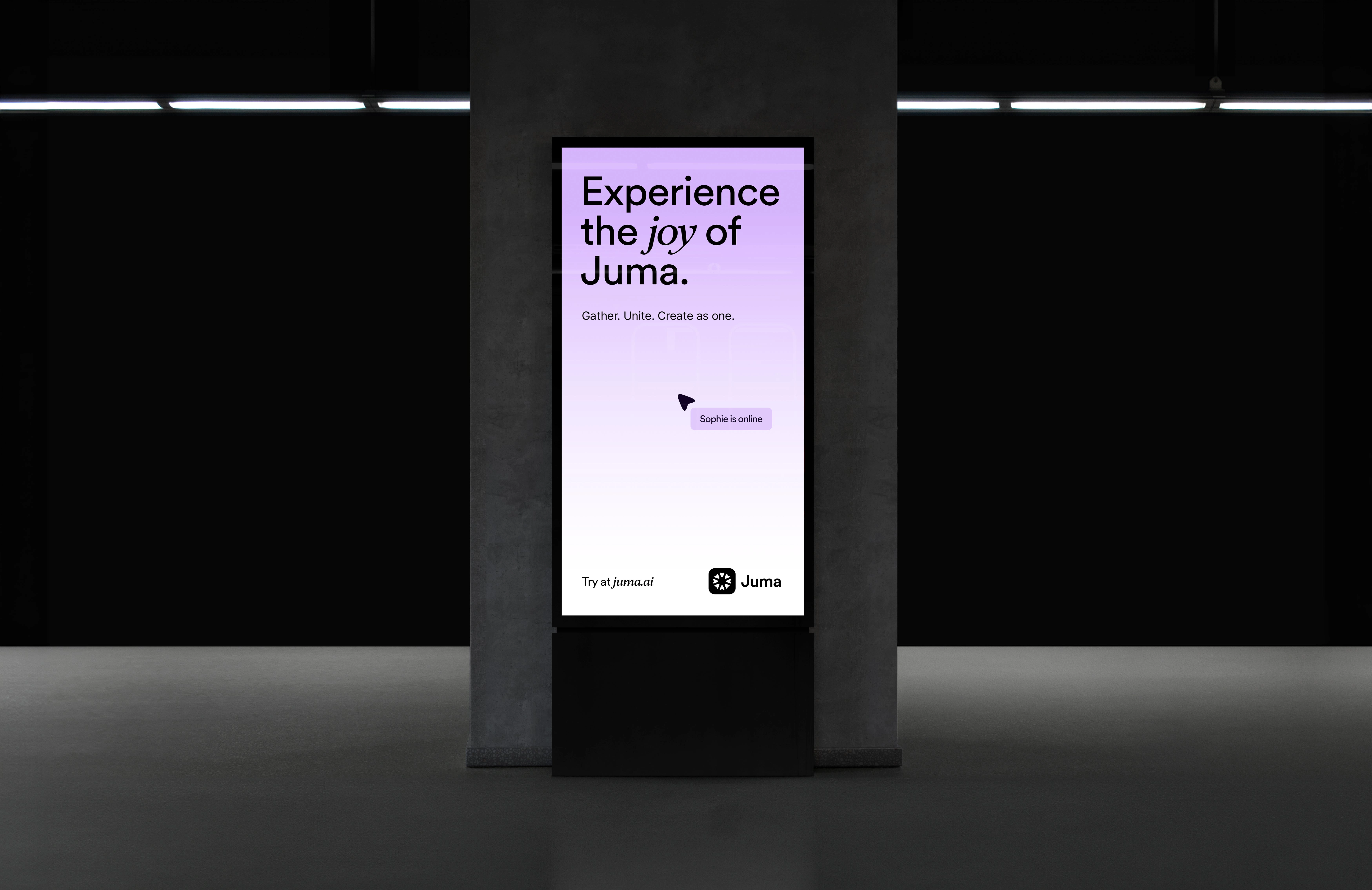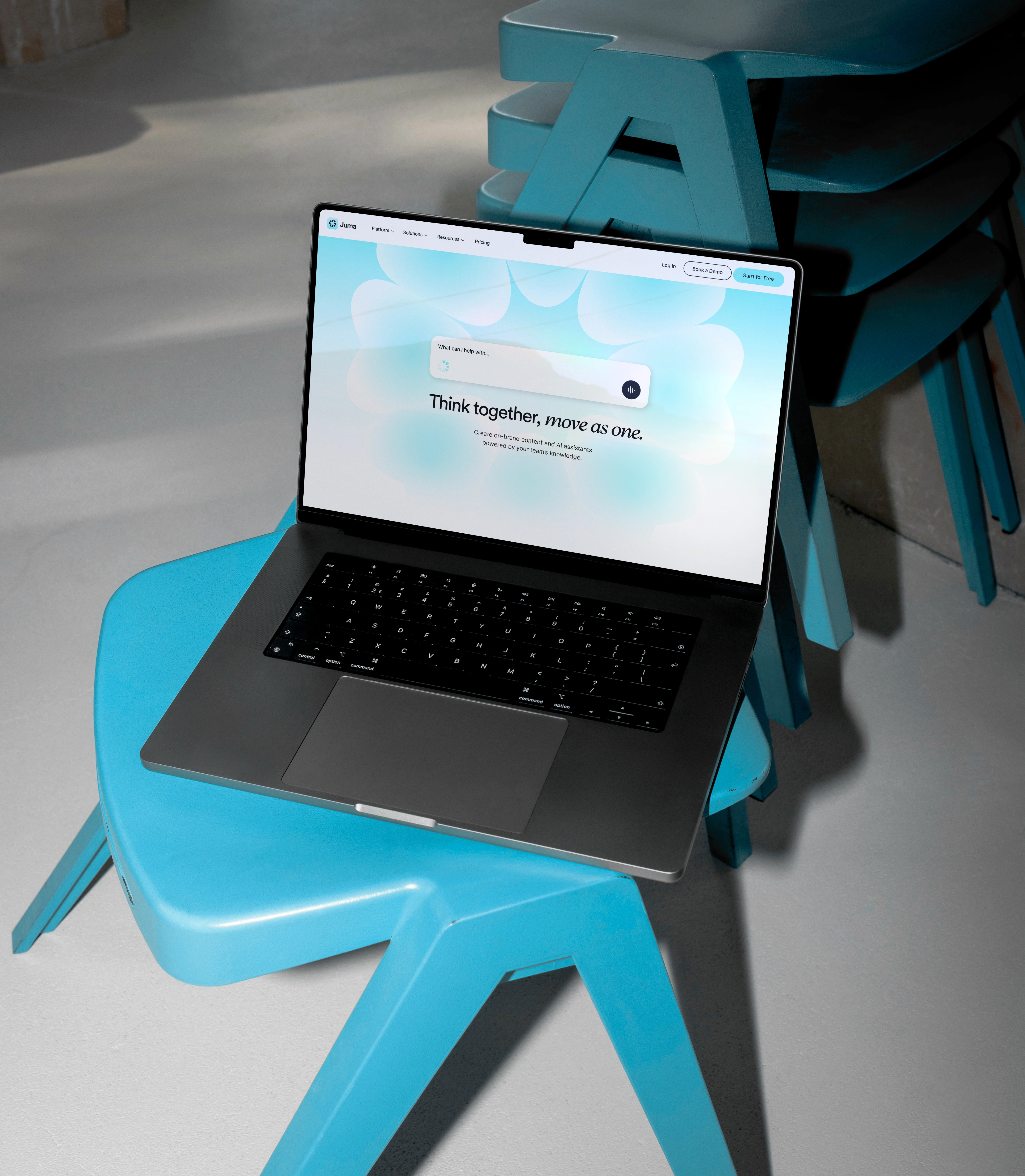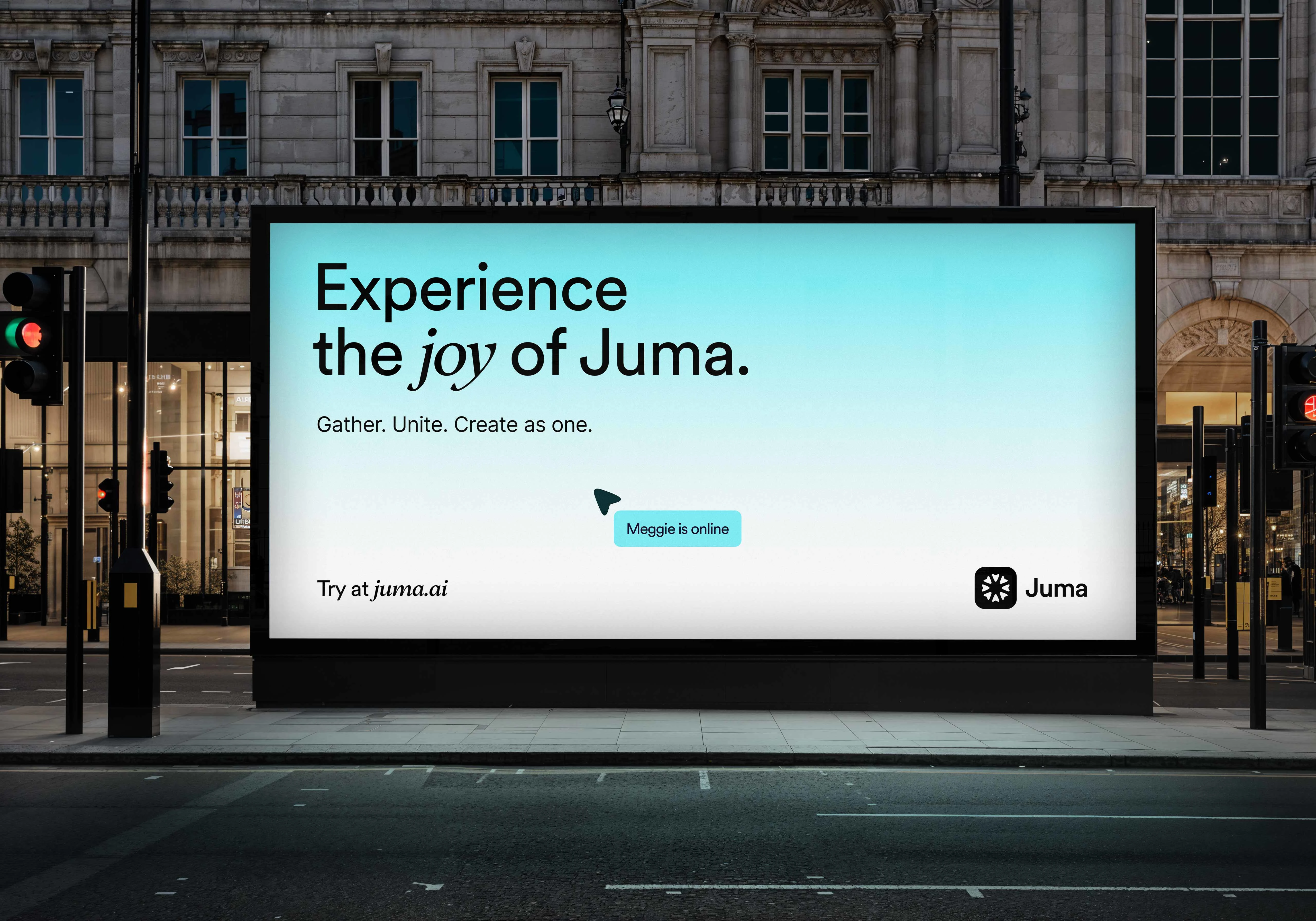 Juma is built for teams who want to co-create with AI, not hand everything over to it. One workspace for research, strategy, content, slides, and images. The visual identity reflects this: multiple cursors converging into a single spark. Collaboration in action.
