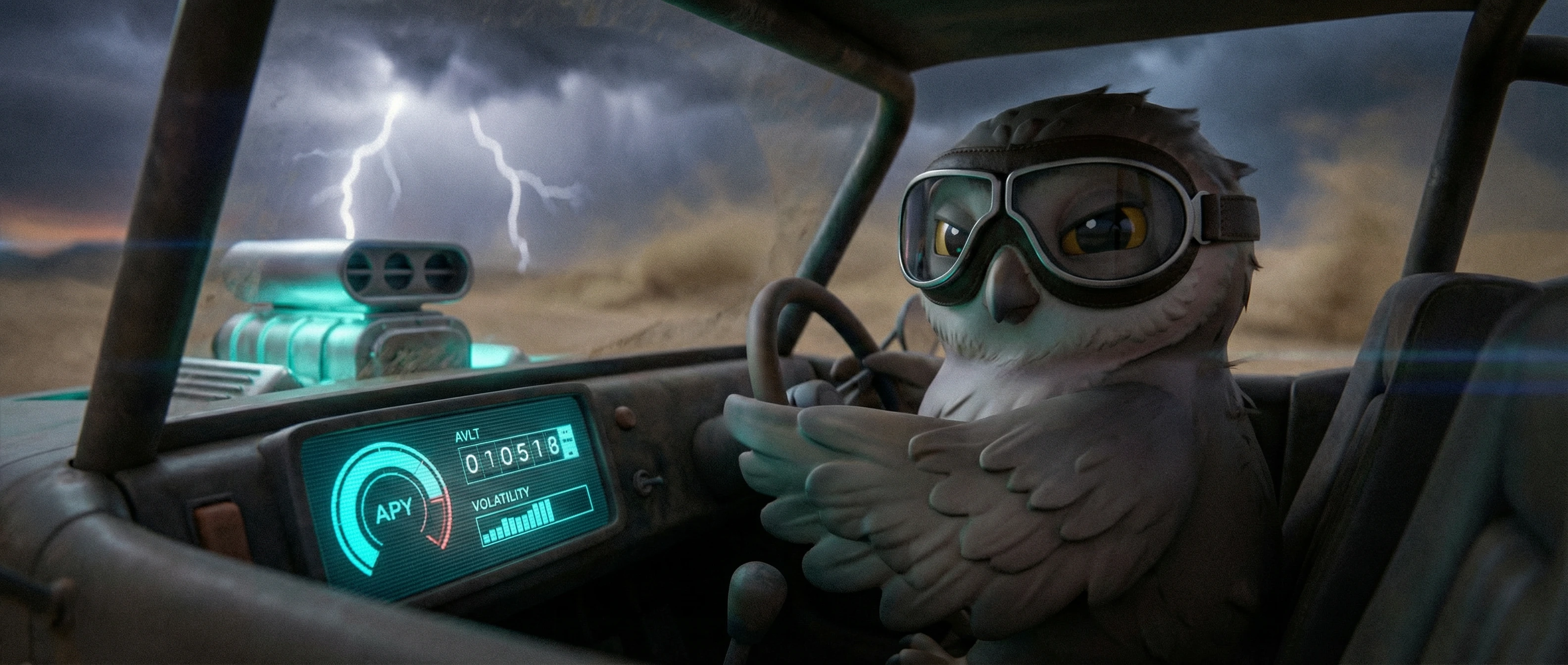 Narrative Design: Built a visual metaphor using a rugged vehicle where the engine represents APY and energy trails represent the absorption of competitor TVL.