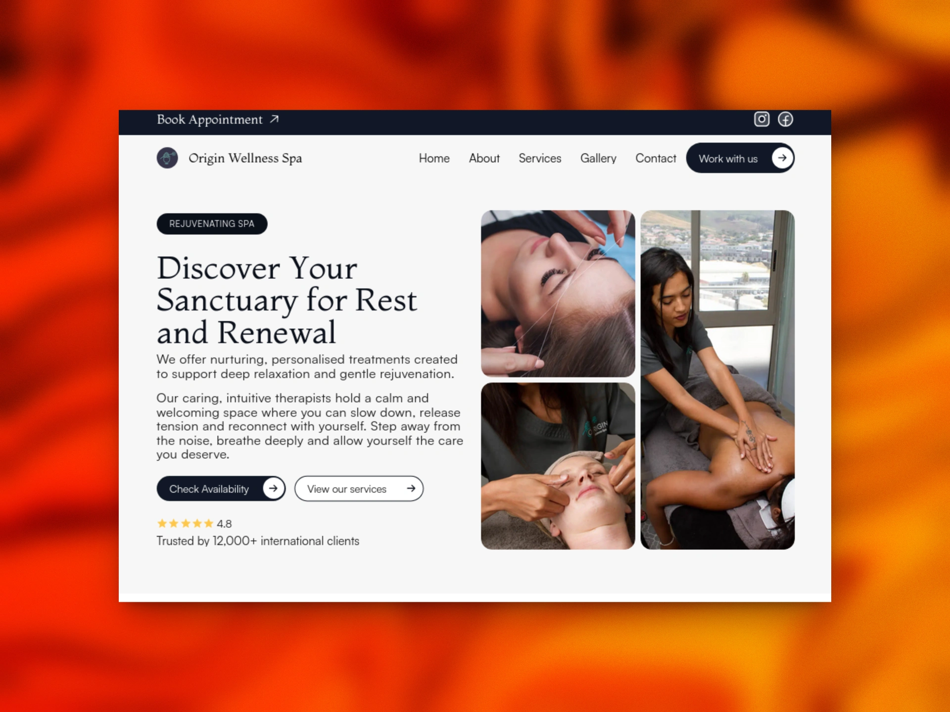 We partnered with Origin Wellness Spa to transform their digital presence into a calm, conversion-driven experience that reflects their values of balance, wellness, and relaxation.