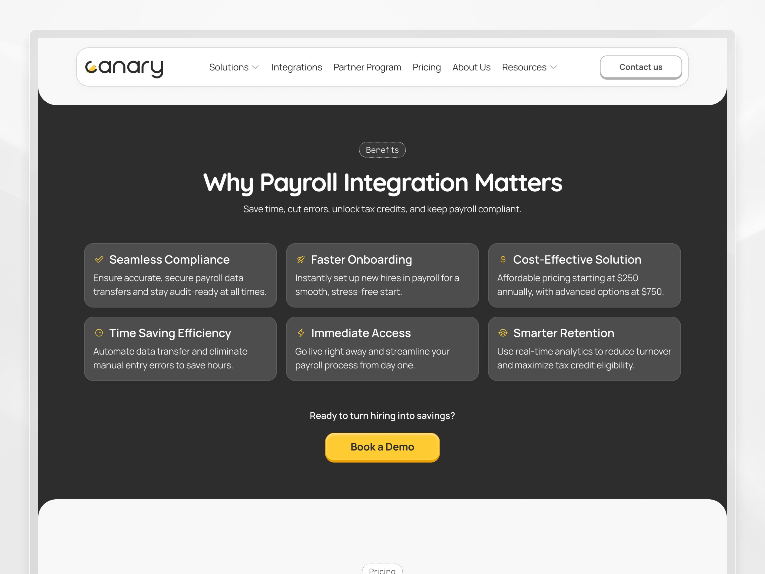 I designed and developed Canary AI’s marketing website in Framer to support the launch and growth of a fast-moving SaaS product. Working closely with the founding team, I implemented a scalable CMS that empowers internal teams to manage content without dev involvement. The site is fully responsive, features smooth interactions, and aligns tightly with the brand's mission to streamline tax credit optimization and employee retention. Every layout was built with clarity, conversion, and future scalability in mind.