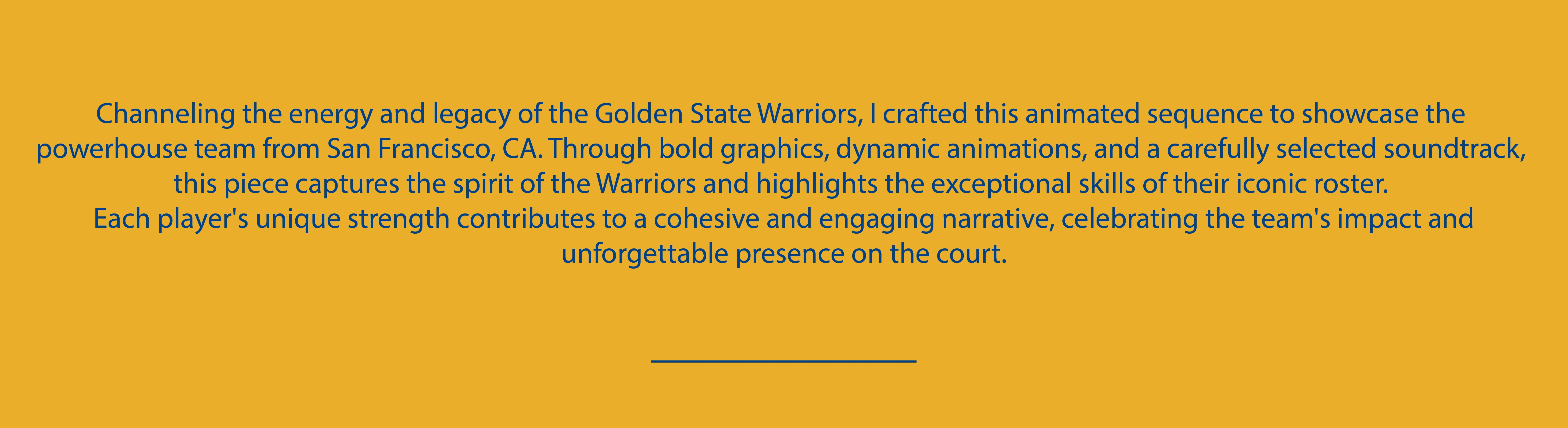 Created a bold animated piece for the Golden State Warriors, blending dynamic visuals and sound to celebrate the team’s legacy, energy, and standout players.