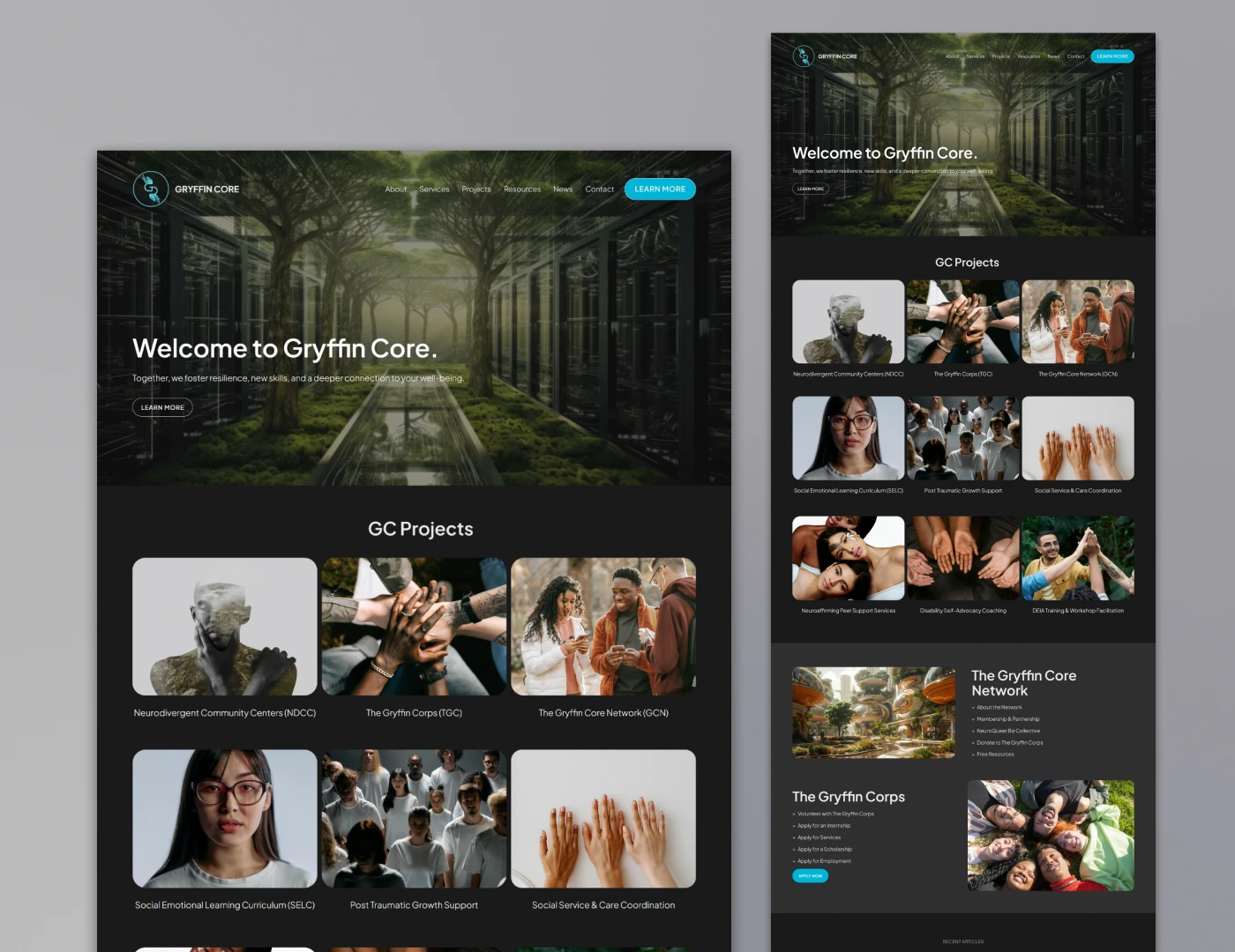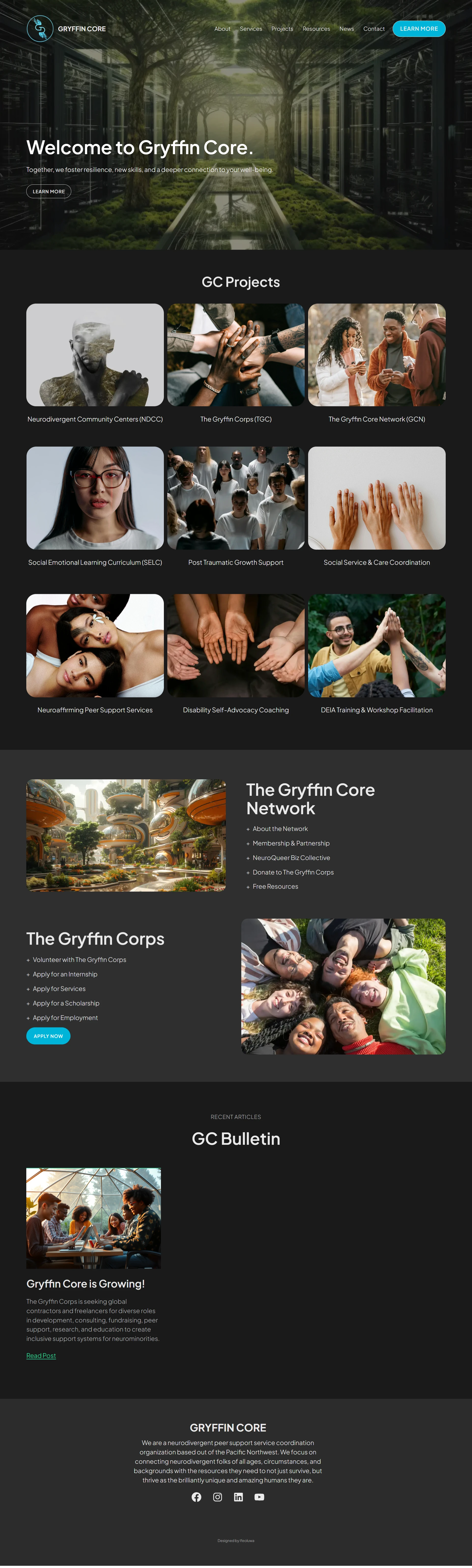 I collaborated with Gryffin Core, a neurodivergent peer support service organization, to create and enhance their digital presence, focusing on user-friendly, accessible website designs that aligned with their mission to support neurominorities. We developed a platform to facilitate donations from sponsors, improving financial sustainability and community support. Ensured the website was intuitive, accessible, and engaging, reinforcing the organization’s values of growth, healing, and positive feedback loops for both local and global users."