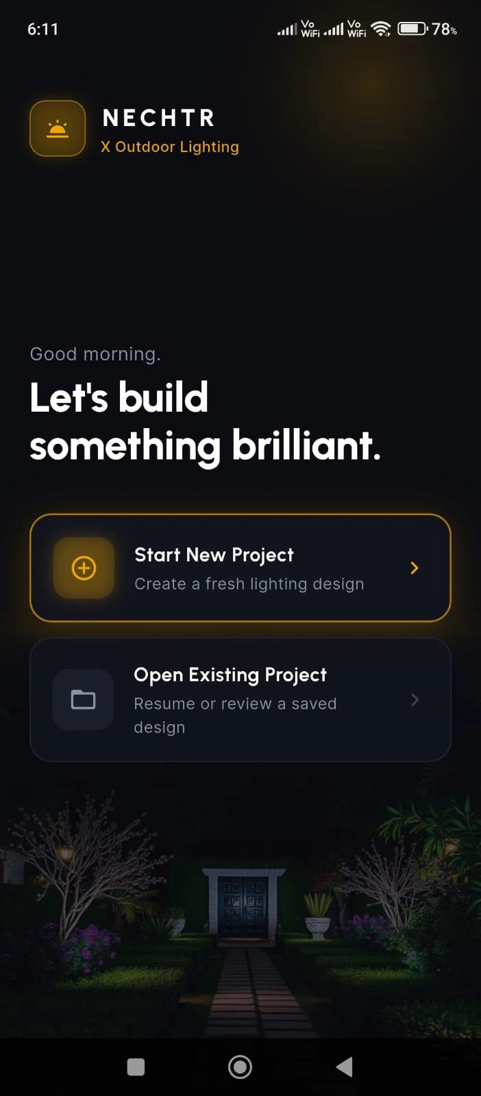 Design the Nechtr private Business Management Application where employee can set the required items and instruments to place the Outdoor lights