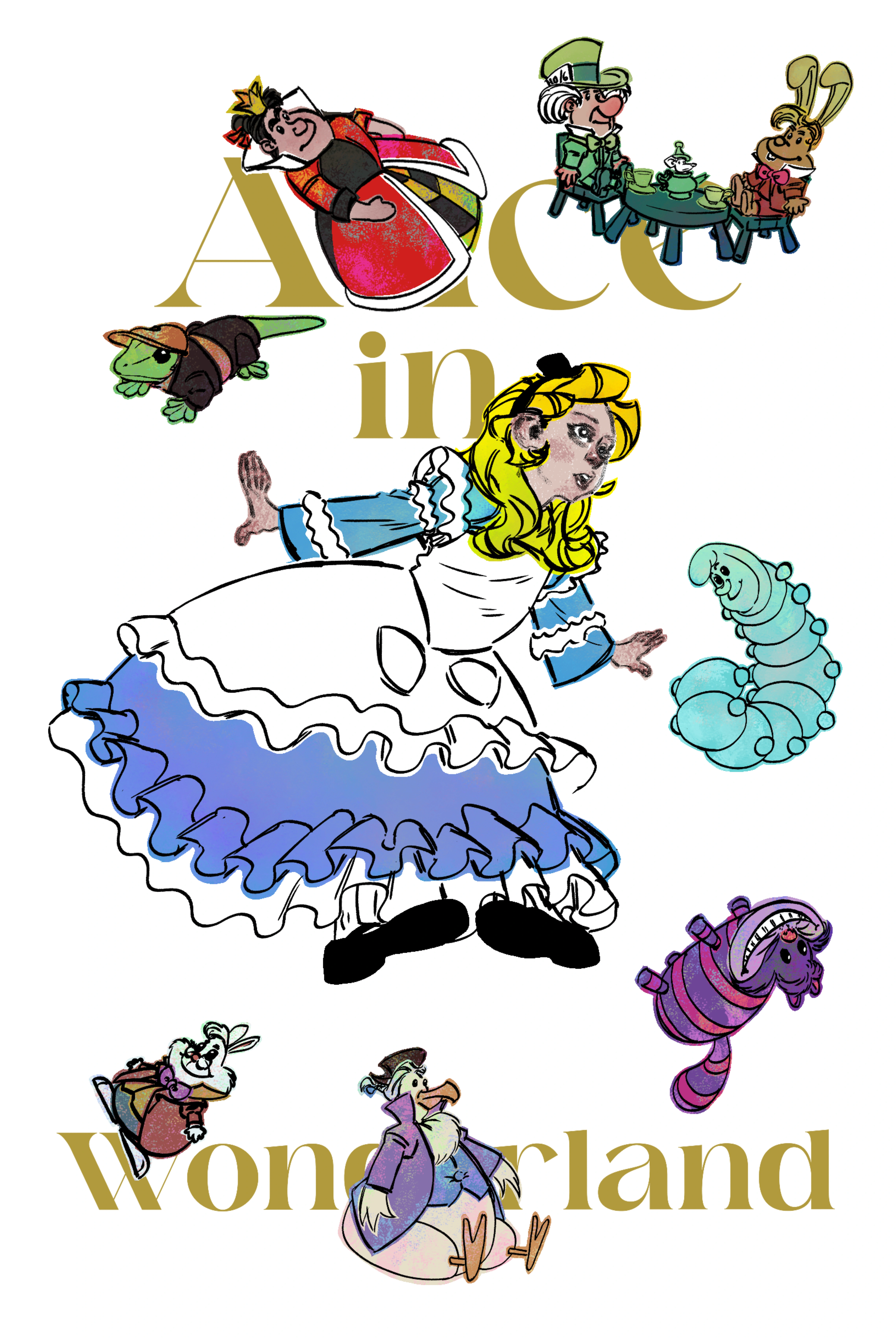 A Book Cover Illustration and Design fan Art for a book titled Alice in Wonderland by Lewis Carroll