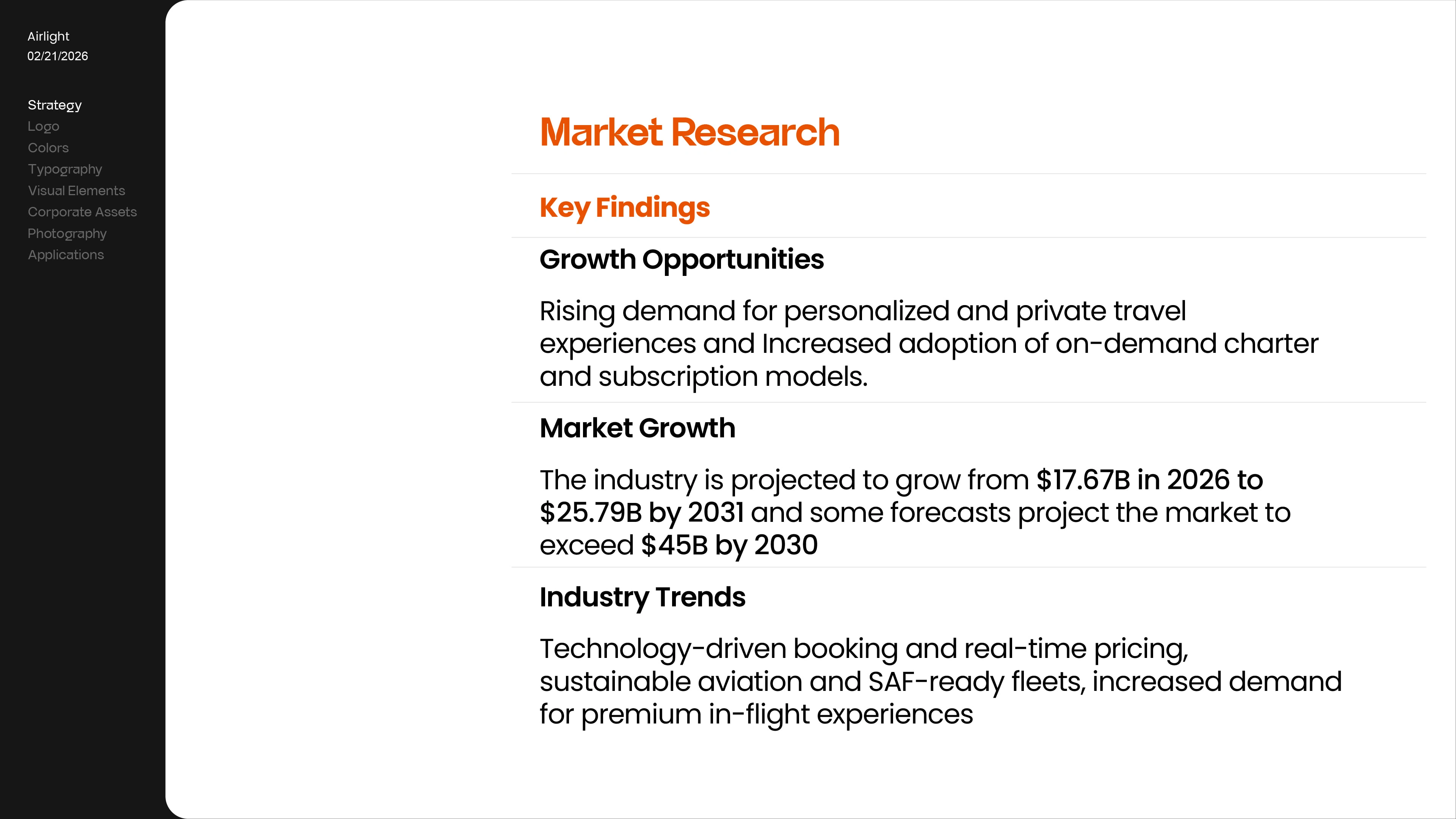 A private aviation brand has a lot of room for premium positioning and storytelling, so building the strategy from the foundation made every decision stronger.