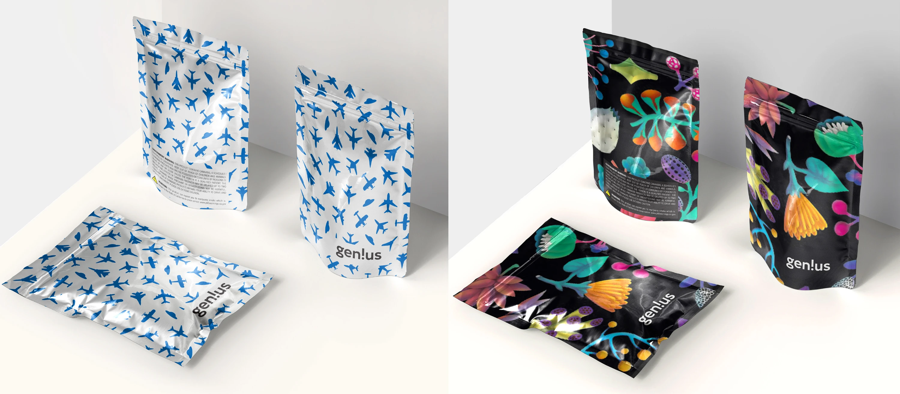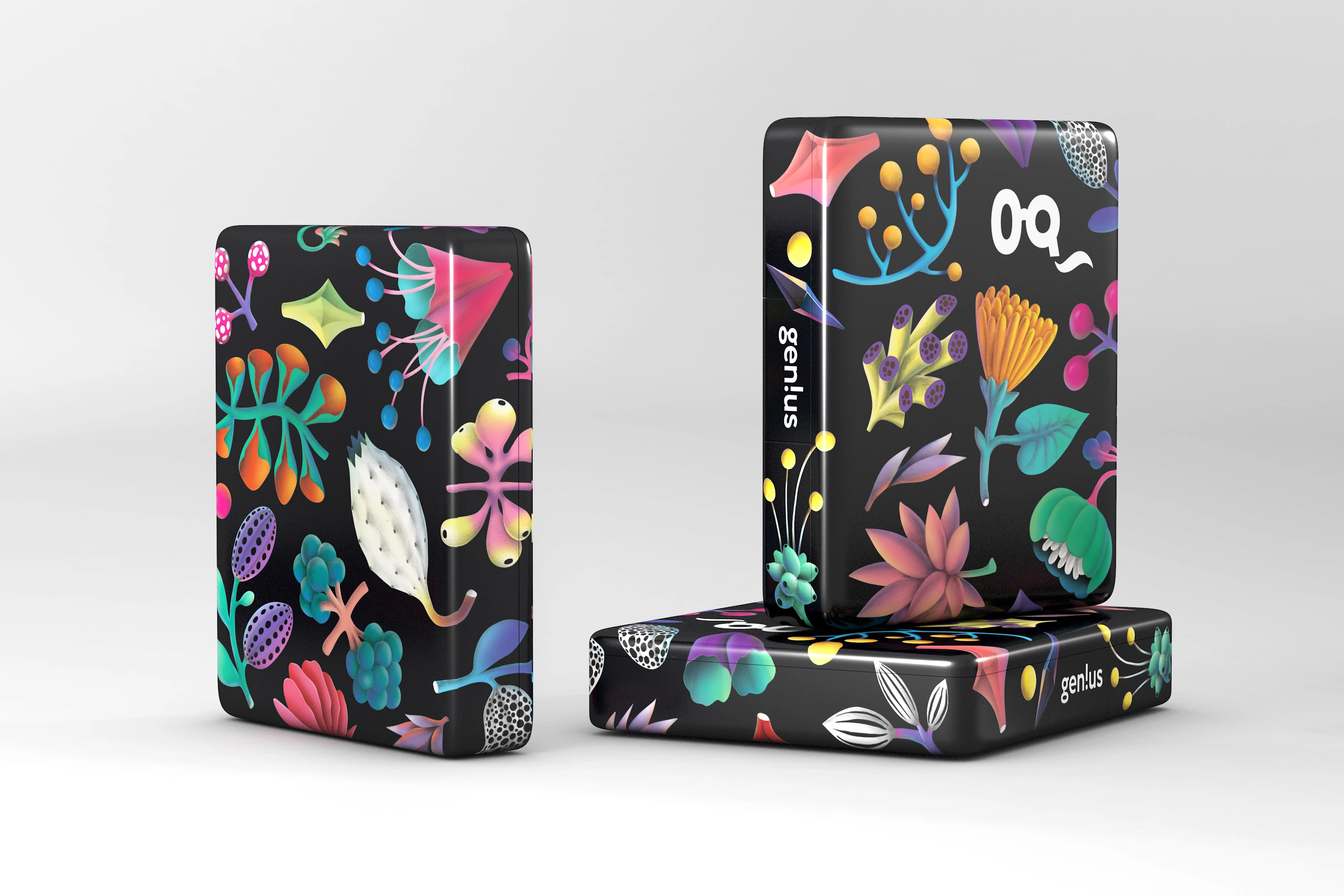 A hard plastic case with a vivid botanical pattern was designed as a travel pack for purchases in cbd boutique store in LA.