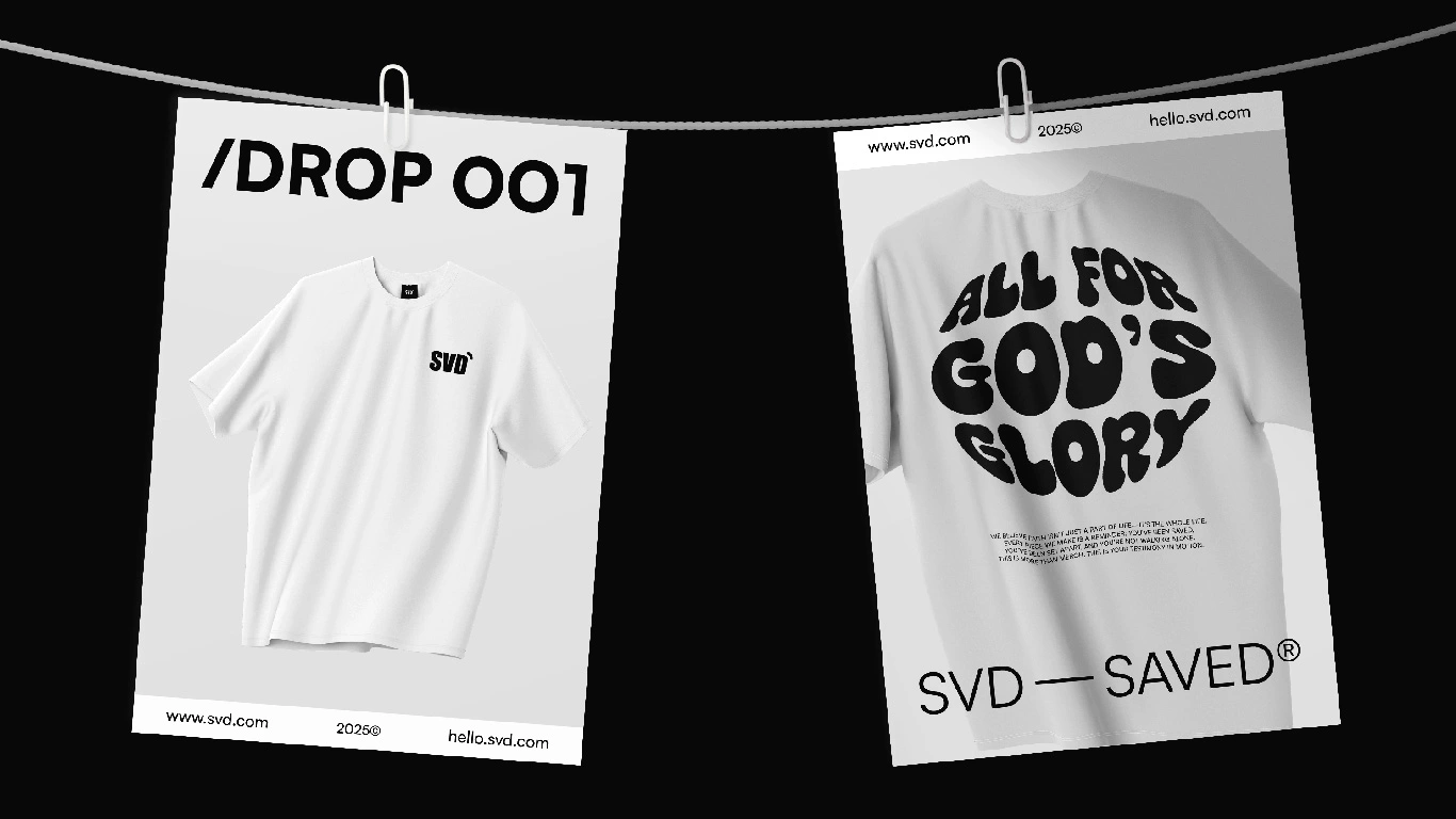 SVD, a bold Christian streetwear brand. I created a clean, modern identity & merch-ready visuals to express faith & connect with a new generation of believers.