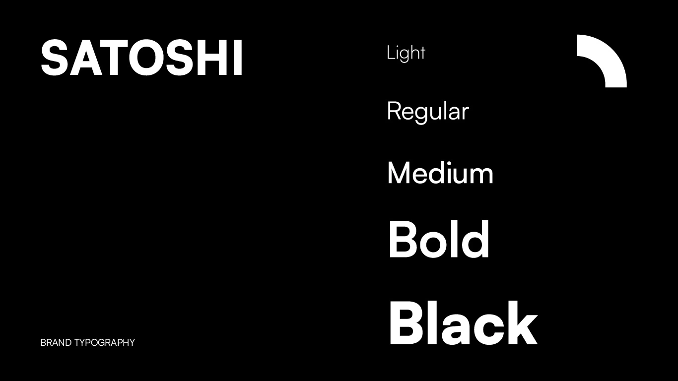 Typography: Satoshi type family in varying weights offers strong readability and graphic punch.