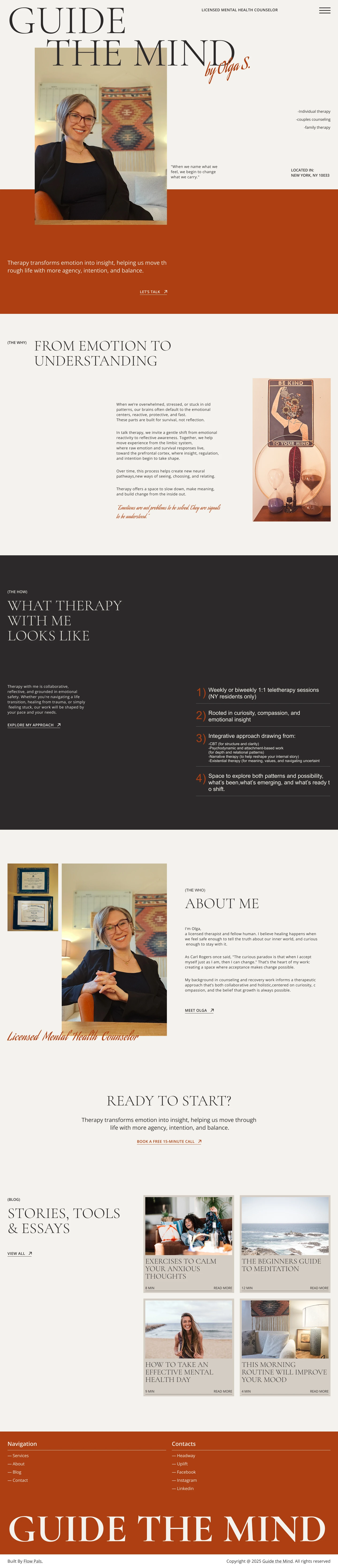 Olga is a wonderful person who provides mental health counseling services in New York. She wanted a clean, personalized website where she could share her blog posts and clearly present her services.