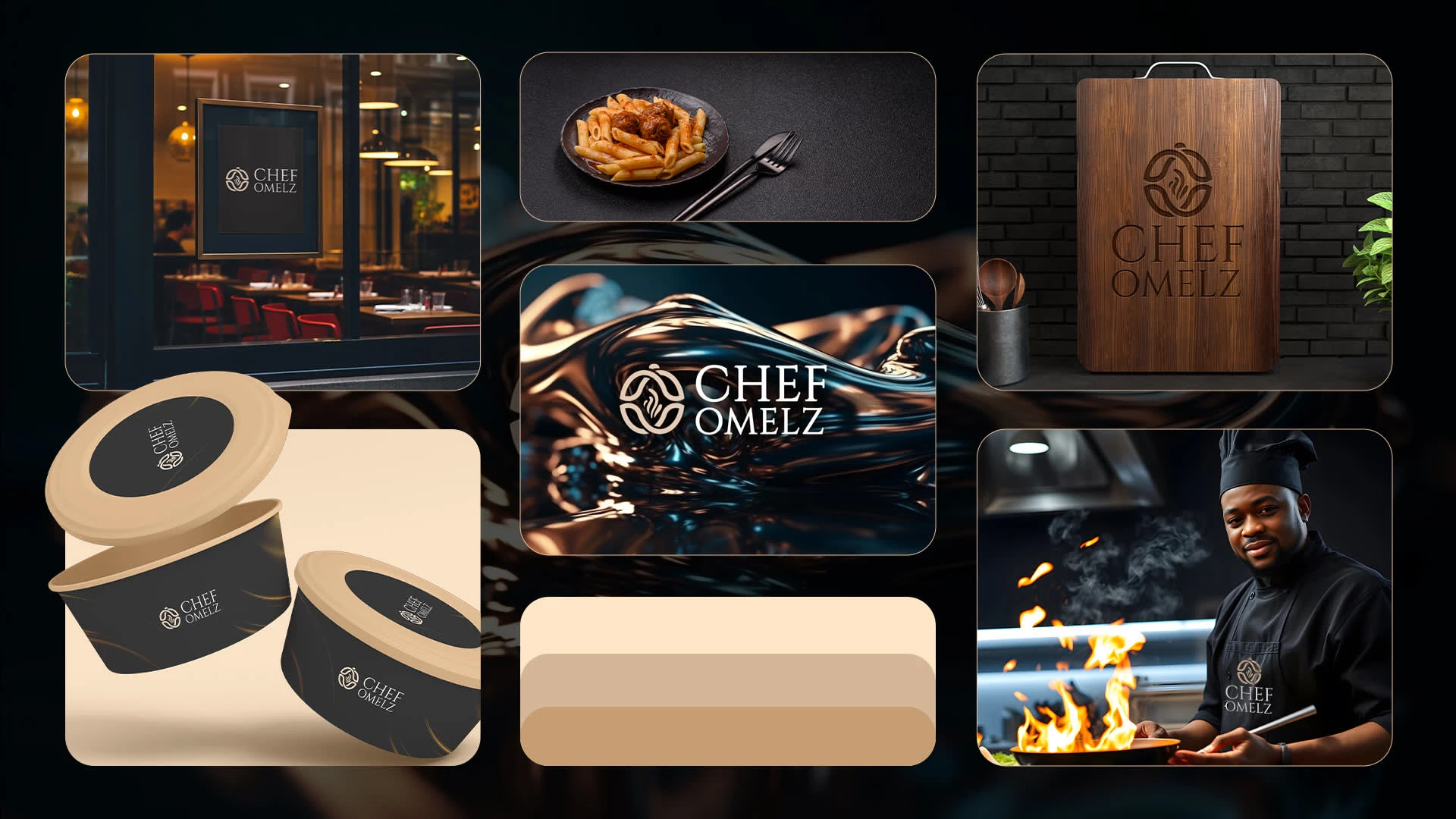 The final identity elevates Chef Omelz into a culinary brand with personality and authority. It communicates passion, trust, and expertise while staying visually versatile across menus, videos, and digital platforms.