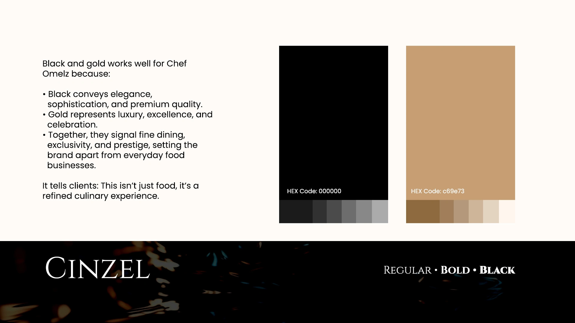 Color Palette: Black and gold — symbolizing luxury, mastery, and depth of flavor